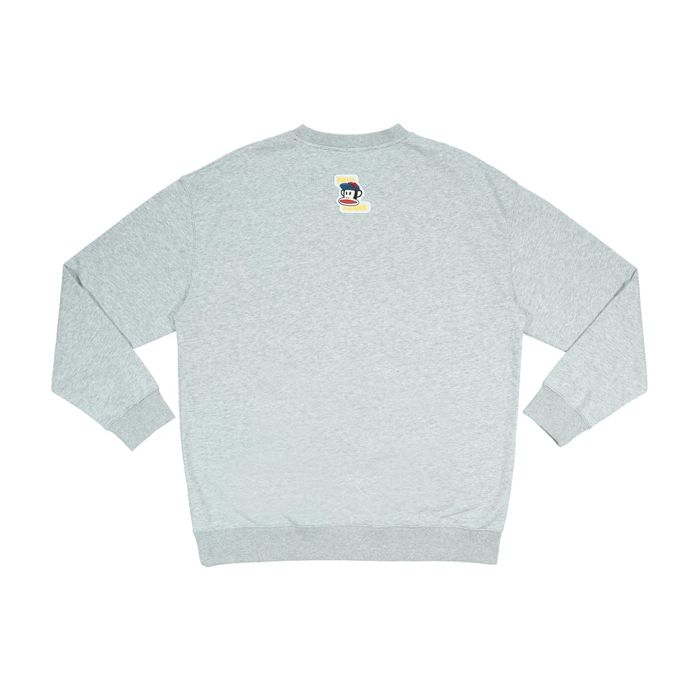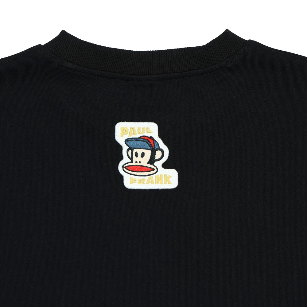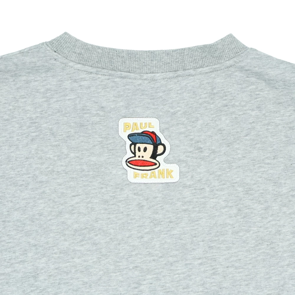 此款經典版型上衣,使用毛圈面料,厚度適中不厚重。 正面為趴臥姿勢的 Bob 印花,手中揮舞著採用特殊工藝製作的 PF 旗幟,呈現出一種慵懶卻又想努力的趣味氛圍。 背面繡有戴帽造型的 Julius 布標,整體風格可愛俏皮,充滿童趣與個性。
