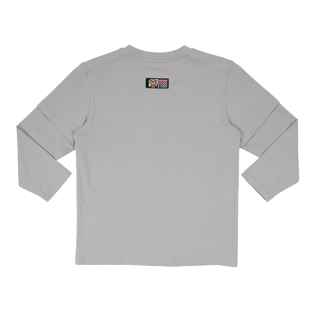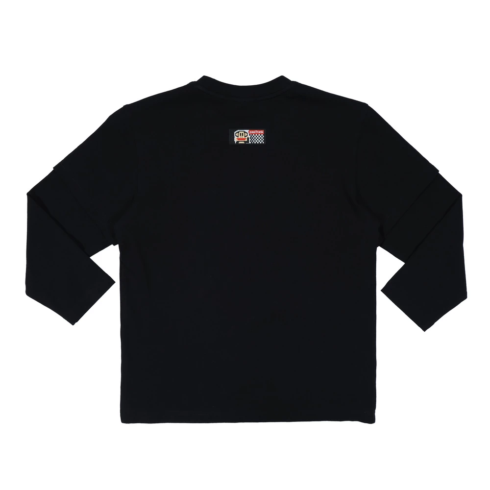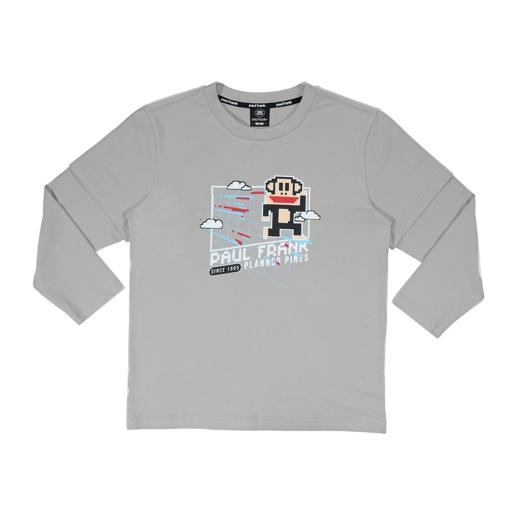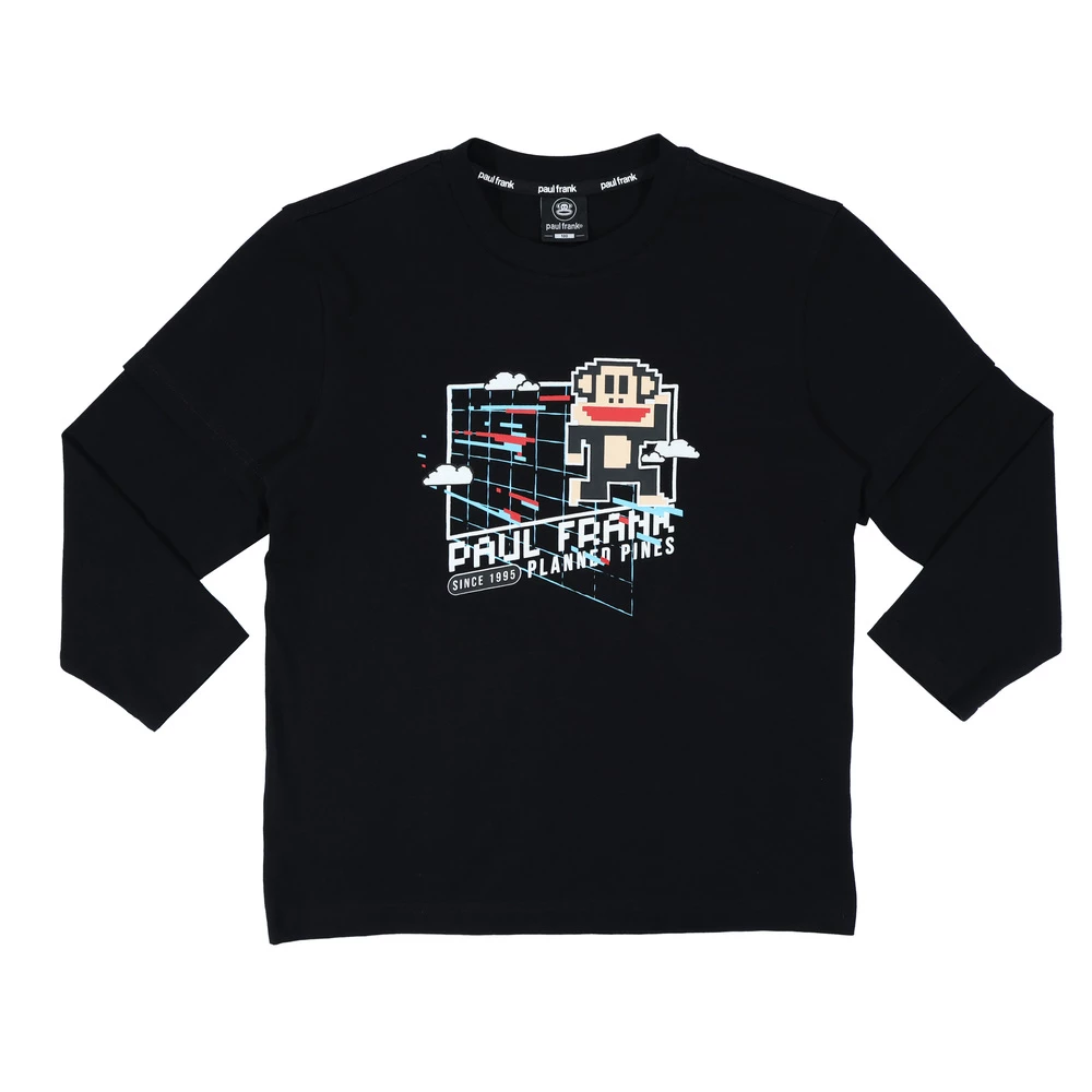 此款假兩件上衣使用帶點彈性的薄面料,穿著舒適,胸前電玩像素Julius大圖充滿遊戲趣味感,在後領下方的像素織標使整體質感更升級!