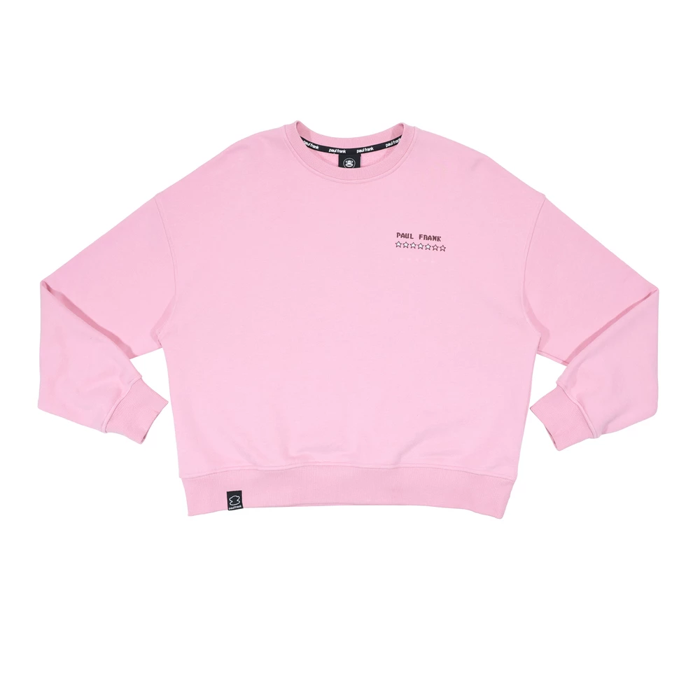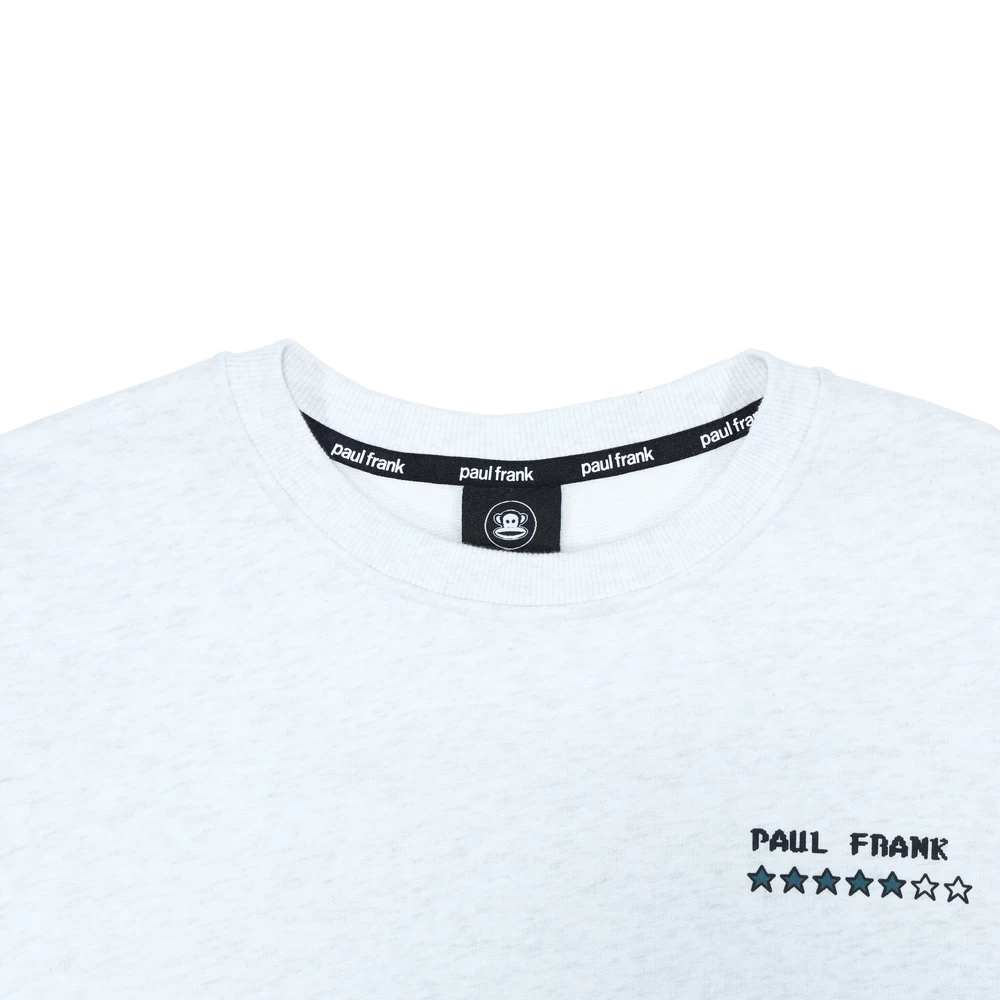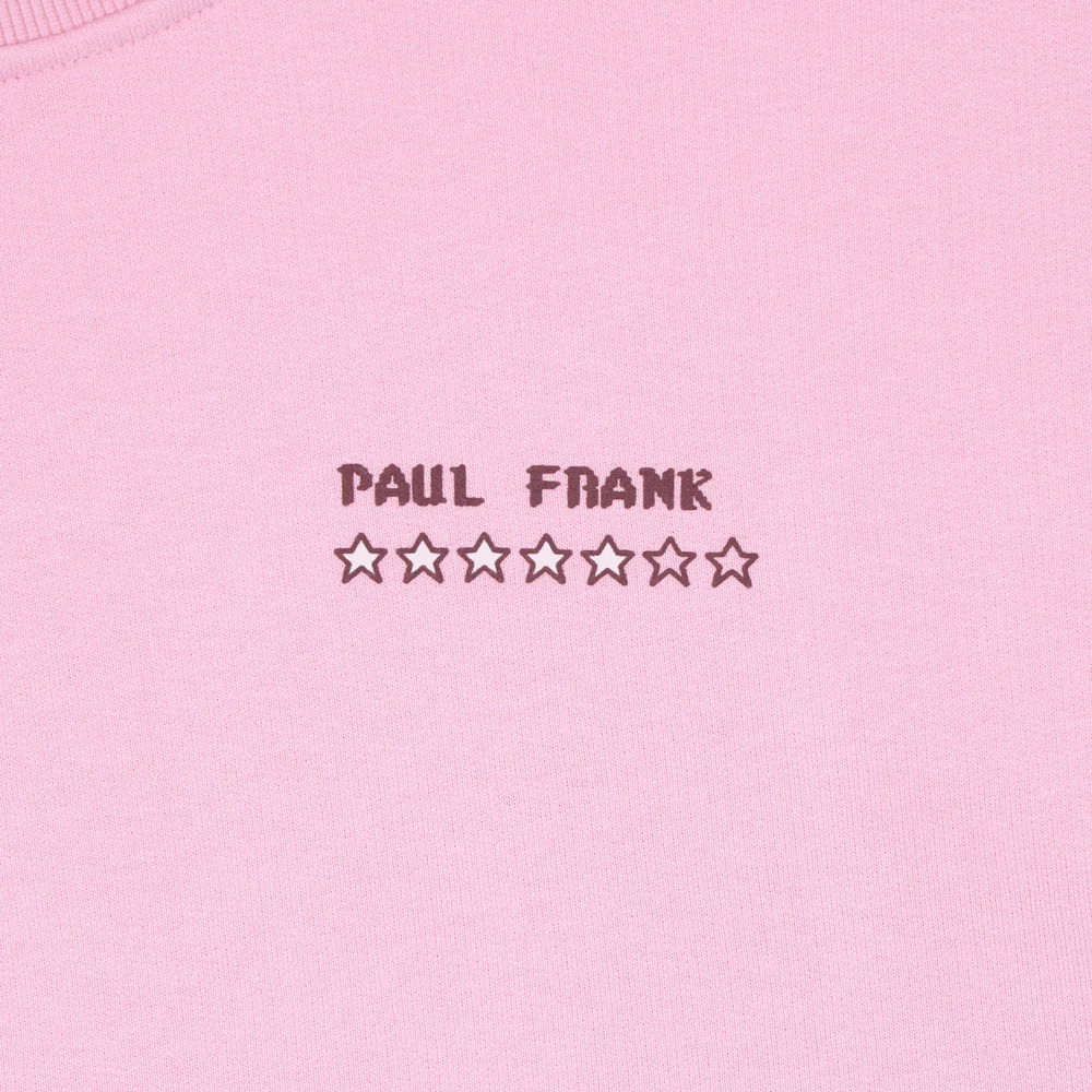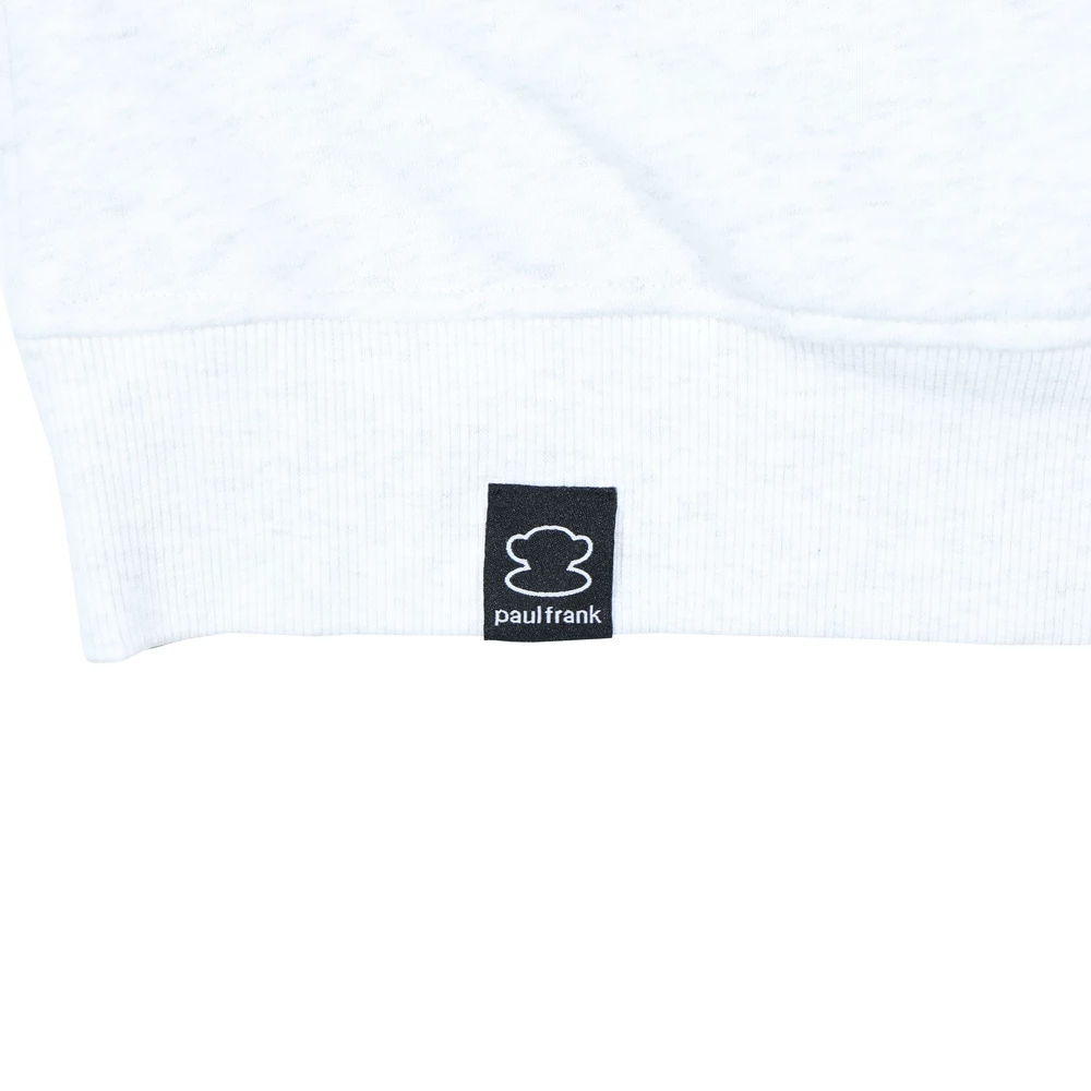 短版寬鬆版型,使用厚毛圈面料,布面磨毛觸感,刷毛保暖舒適。 正面點綴小型像素印花,背面以 Julius 蜜蜂像素圖與方格繡花結合,營造 2-bit 遊戲畫面般的療育童趣感。