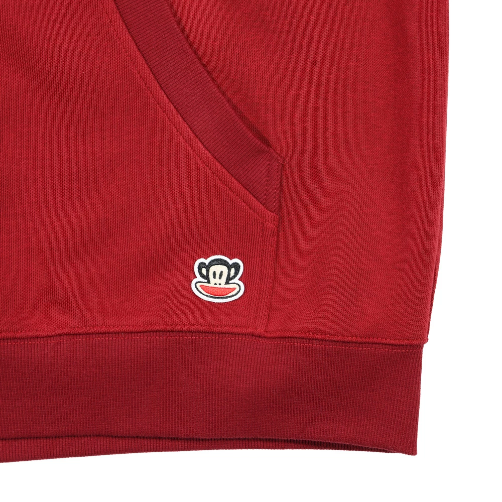 胸前立體貼布繡花使用多層次貼布,工藝特殊亮眼,口袋口使用羅紋收邊,口袋繡有精緻的Julius 小標,整體展現年輕街頭風格,休閒百搭。