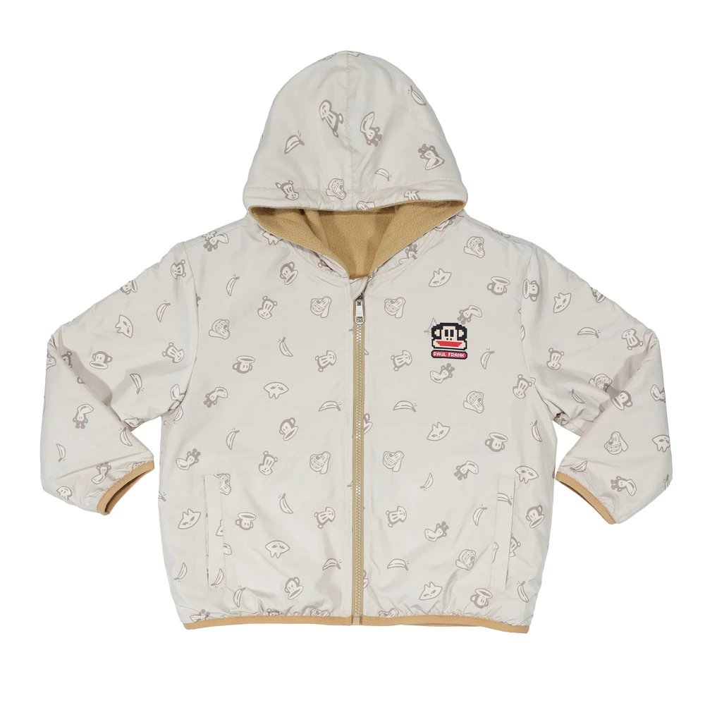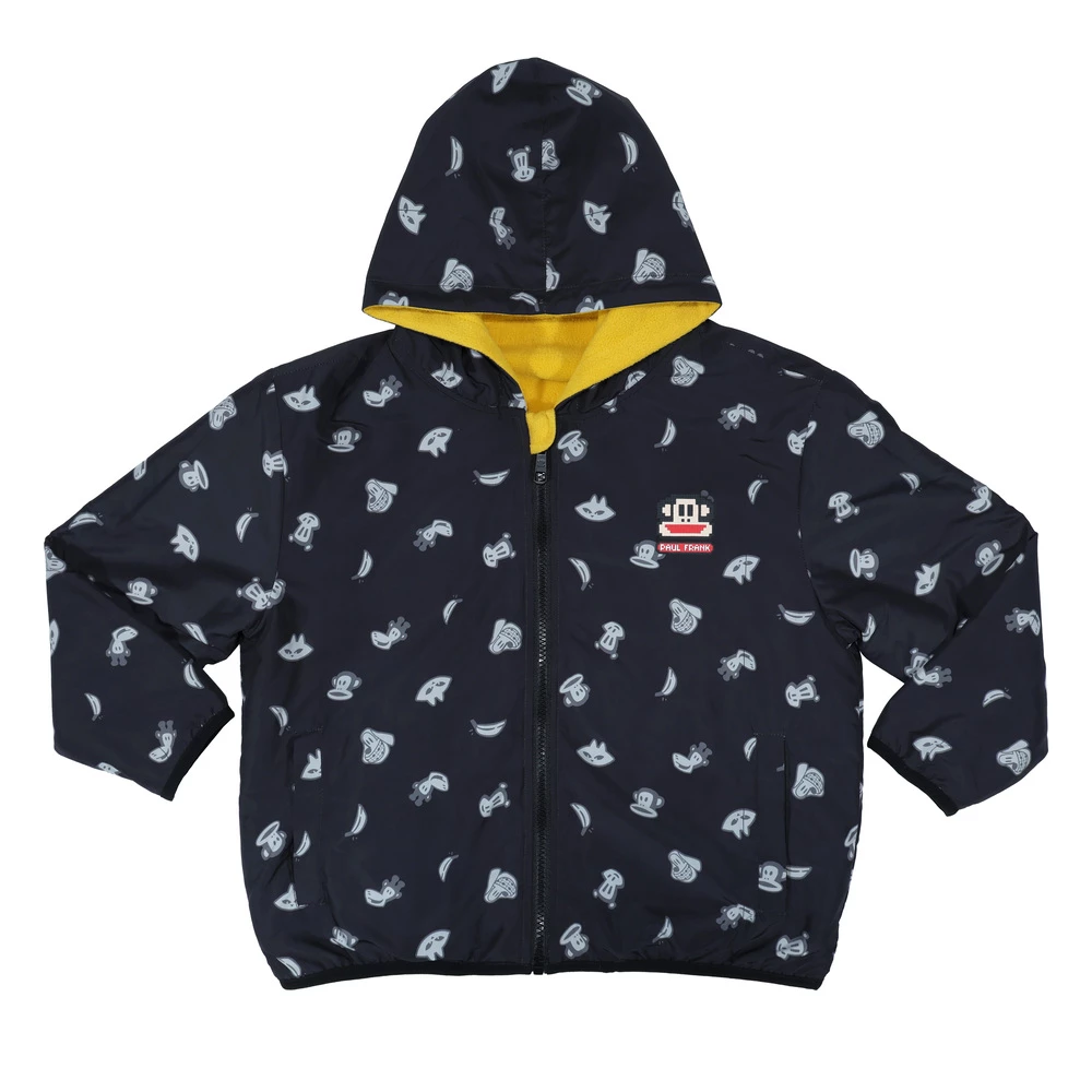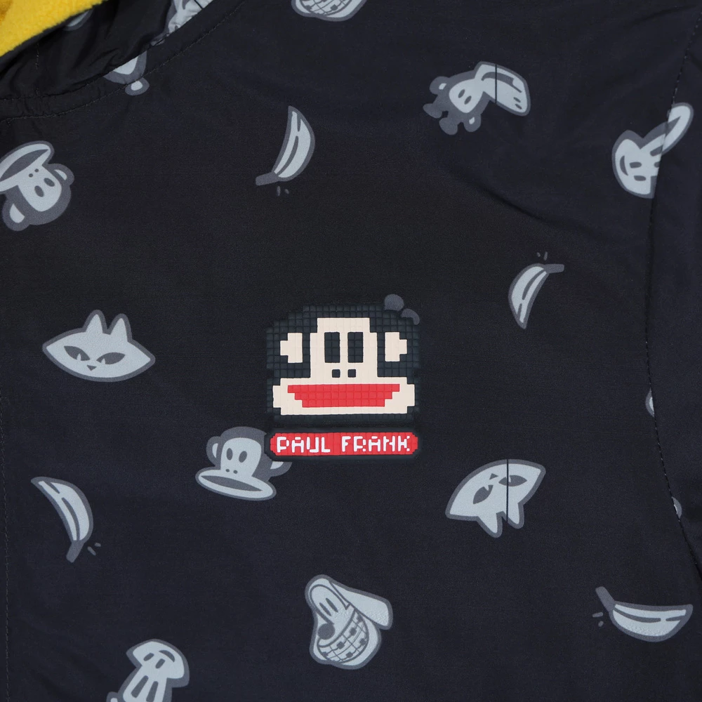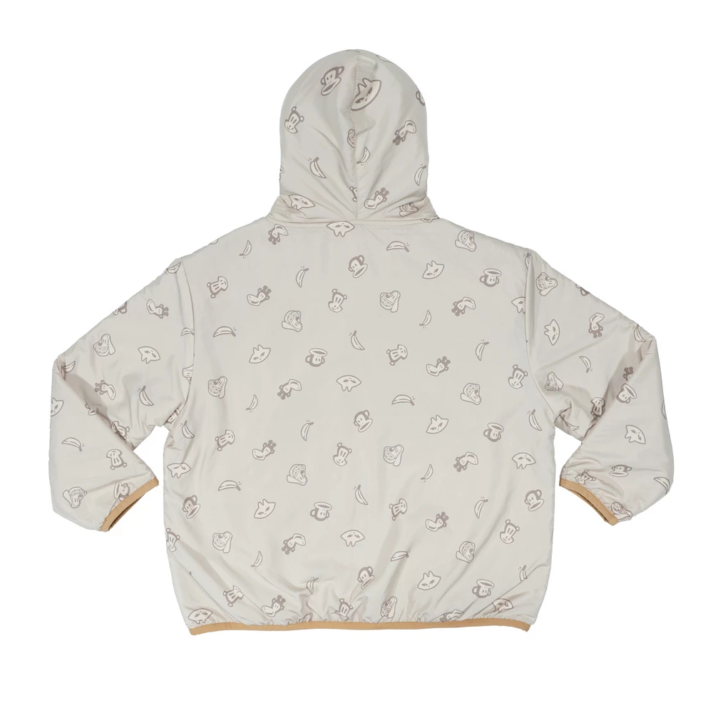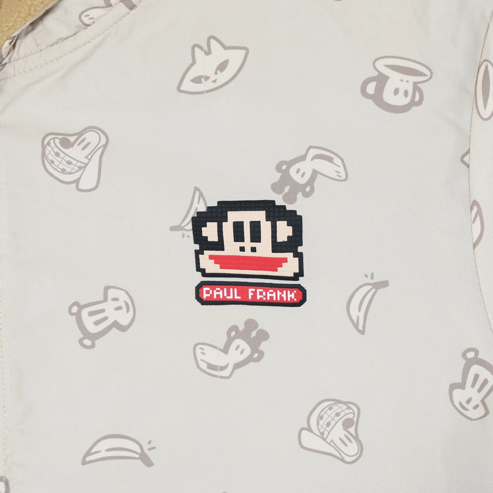 此款雙面外套,一面為滿版角色風衣面料,另一面為搖粒絨面料,可依需求變換外觀,可愛的滿版角色圖案與Julius 2-bit 像素遊戲織標,表現出品牌獨特的趣味風格!