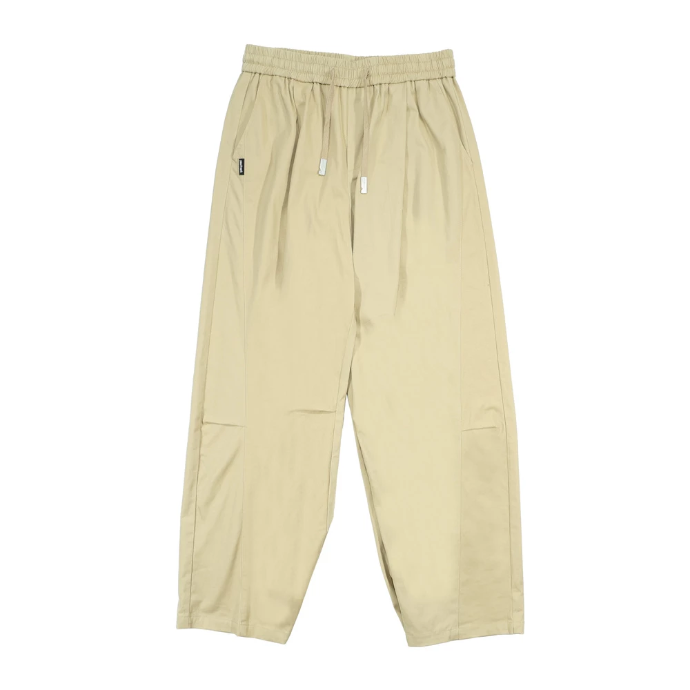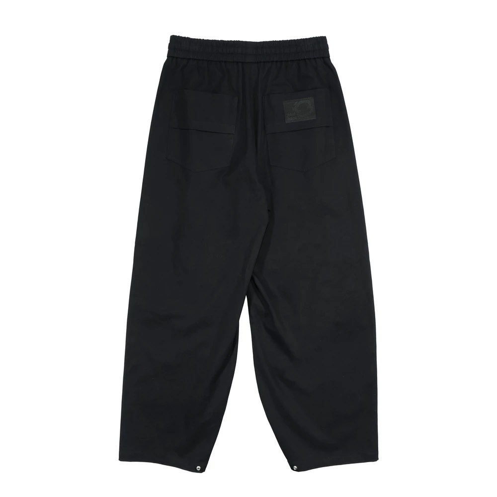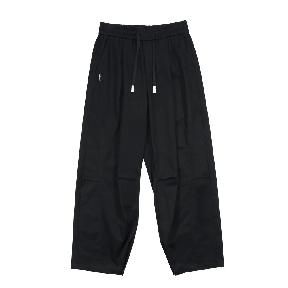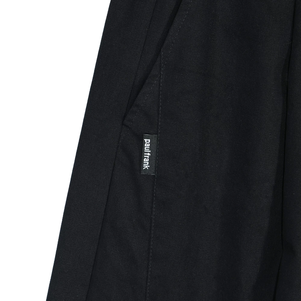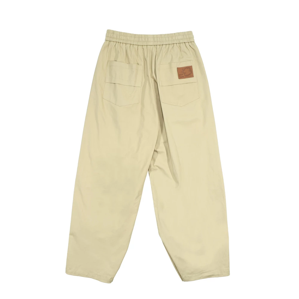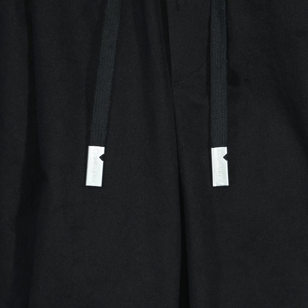 版型為彎刀廓型,側邊剪接打摺設計增加立體度,褲腳四合釦設計可自由調整褲型,腰繩收尾使用品牌繩尾吊鐘,後口袋加上品牌皮標,整體設計率性中帶點俐落。