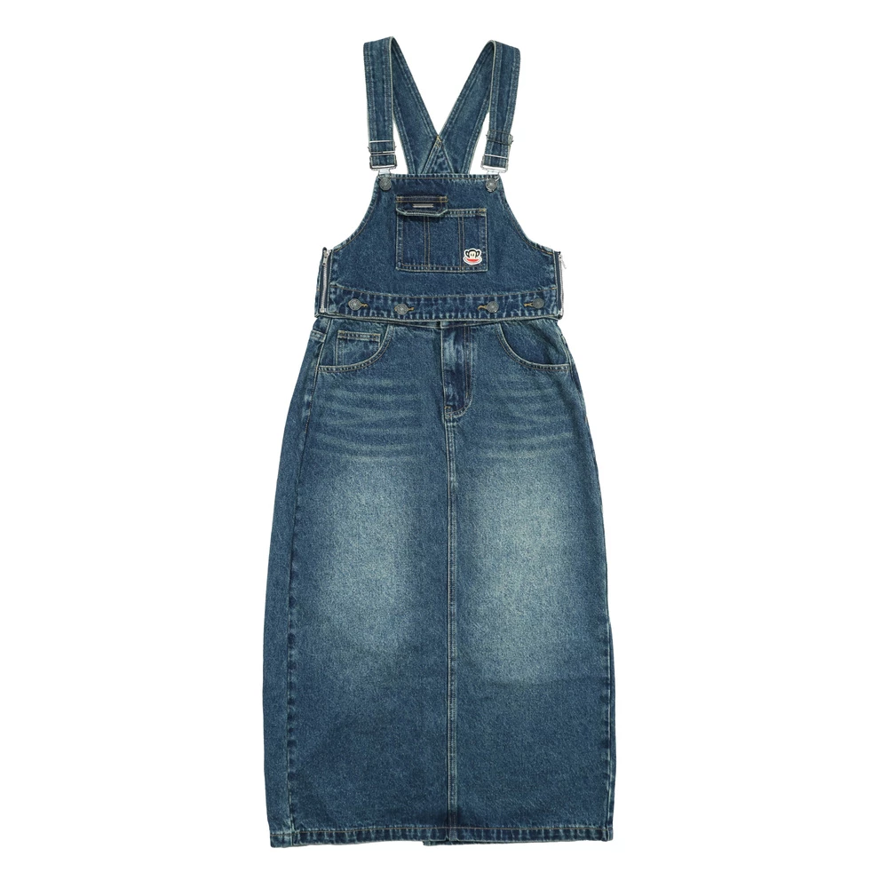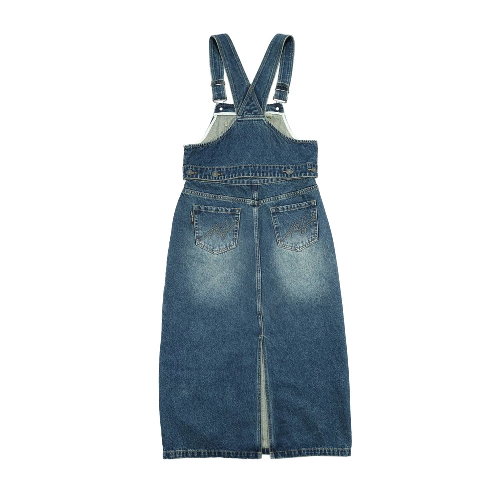 此款牛仔吊帶裙,可拆為外搭上衣及牛仔裙,上衣側拉鍊拉開亦可反扣在牛仔裙上當裝飾片,有多種創意穿法。 前胸帶蓋上縫有品牌鐵標及Julius小標點綴,後口袋繡花為品牌PF草寫圖樣,使用品牌工字釦,眾多小細節吸引目光。 修身版型,彈性牛仔面料,後開岔提供良好活動性,是一件兼具造型與舒適度的多變單品。