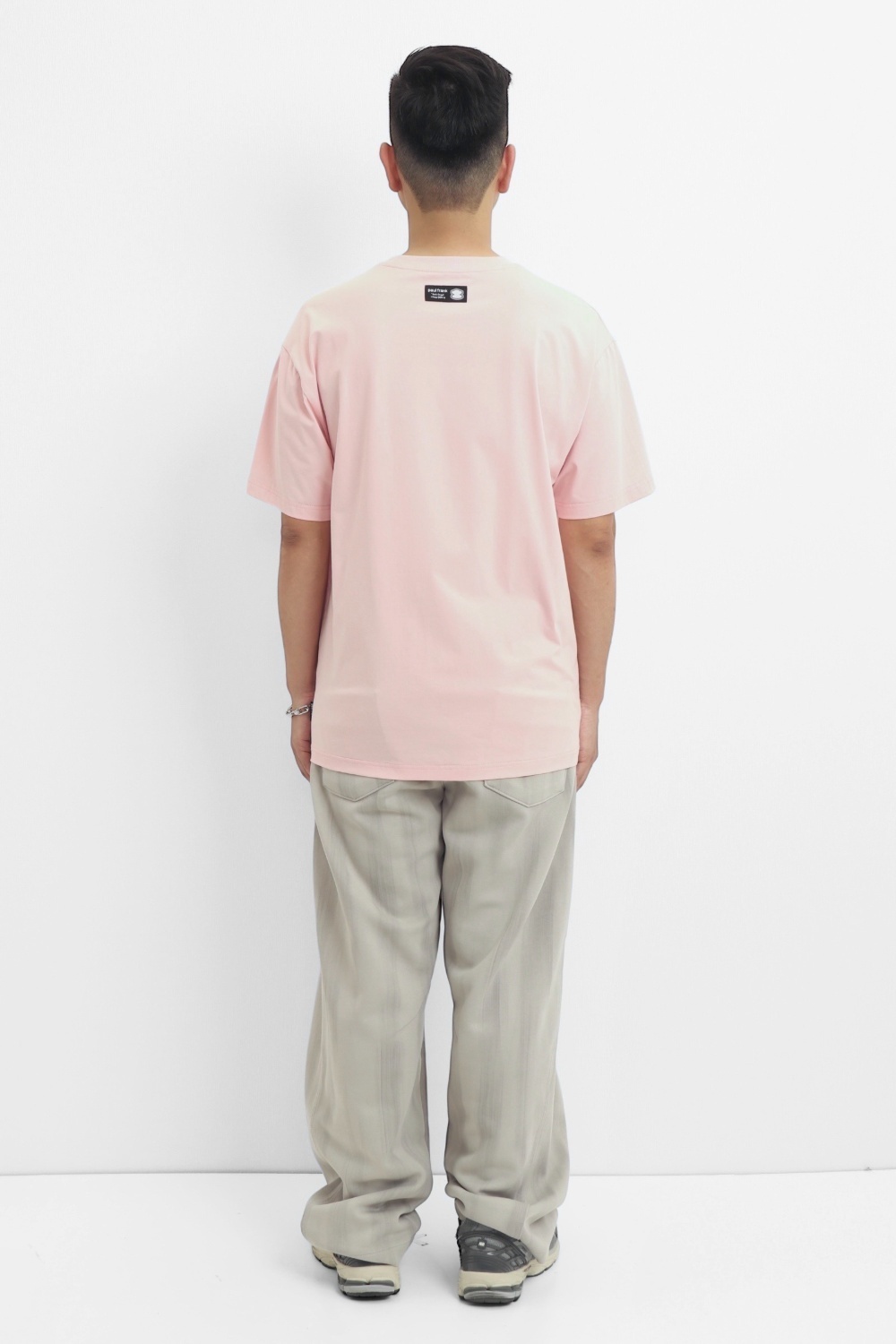 此款為落肩版型T恤選用100%純棉涼感材質,帶來舒適透氣的穿著感受。