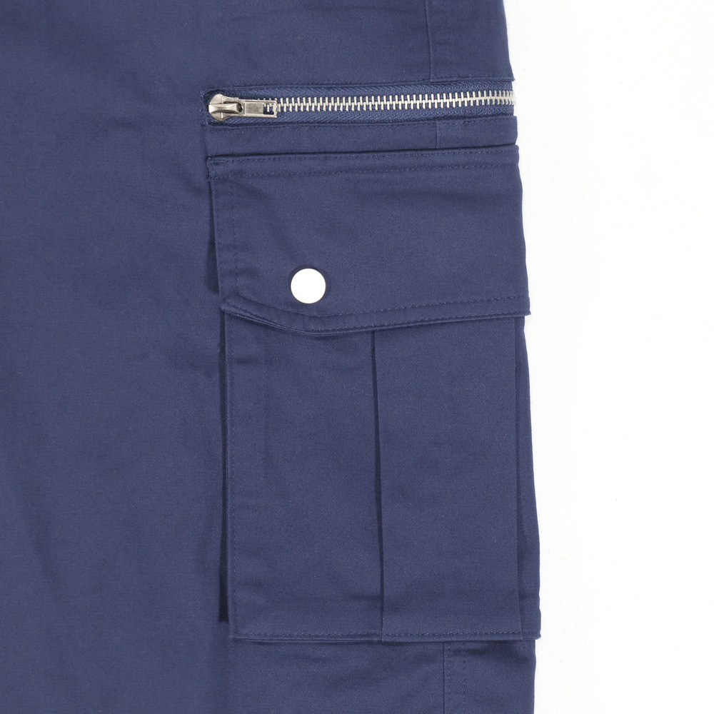 左右側插口袋加上裝飾金屬拉鍊和鉚釘,帥氣有細節,後腰有LOGO皮標設計精緻有辨識度。