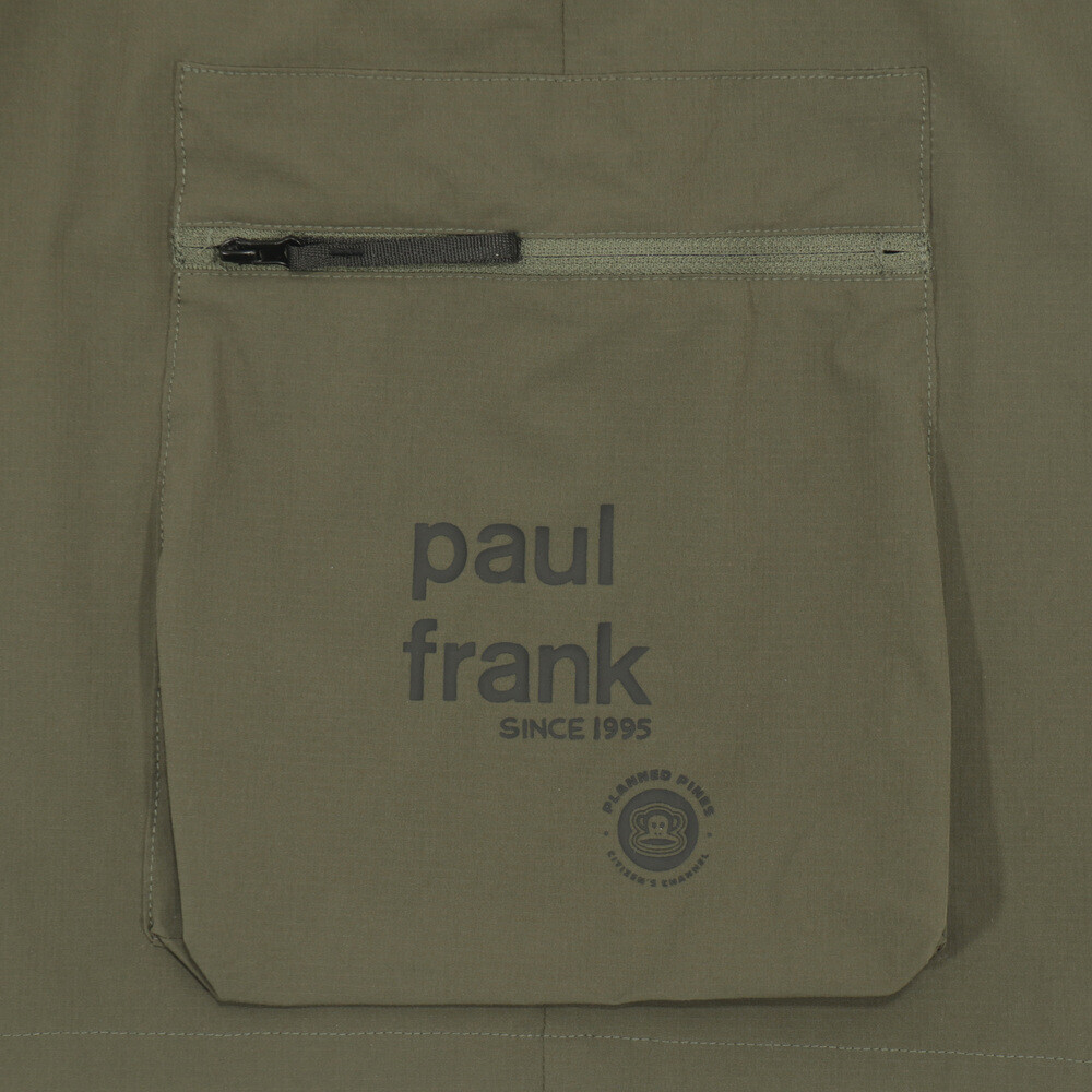 左右立體工裝口袋帥氣有細節,口袋有LOGO厚版印花立體感讓設計細節有辨識度。