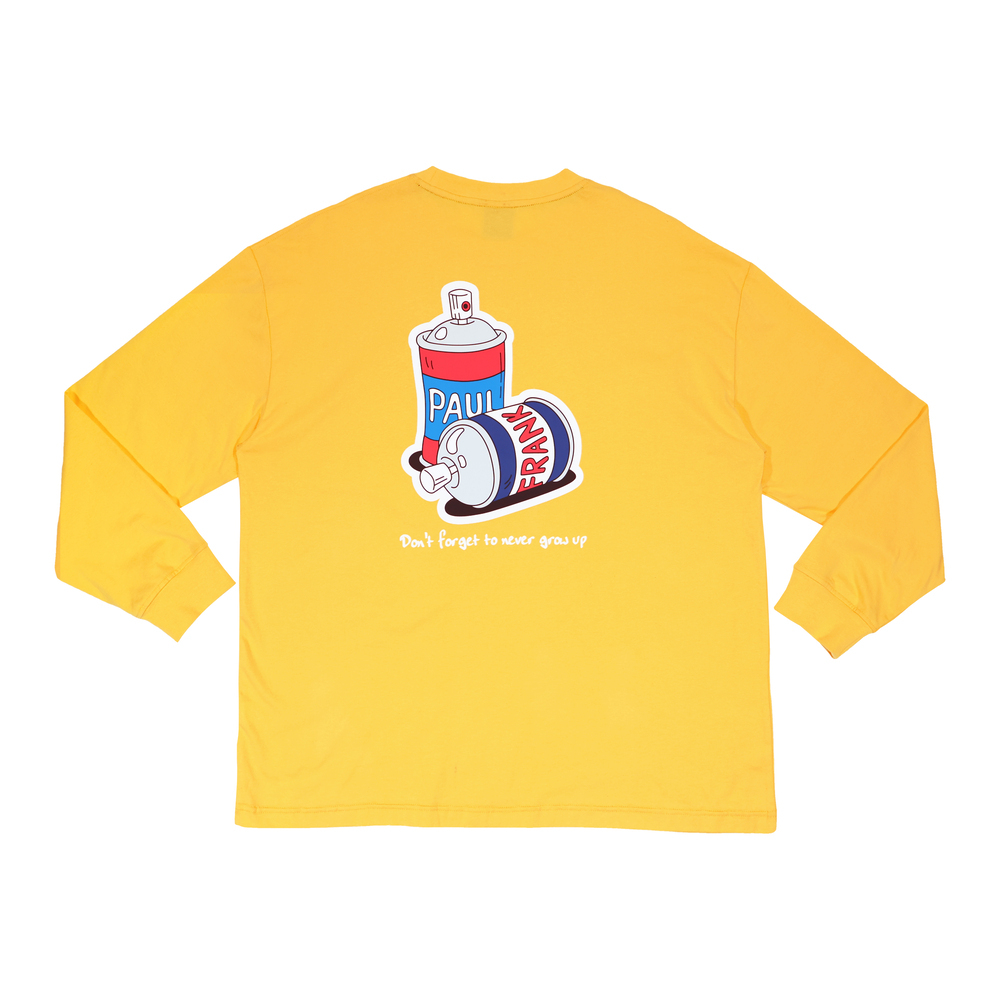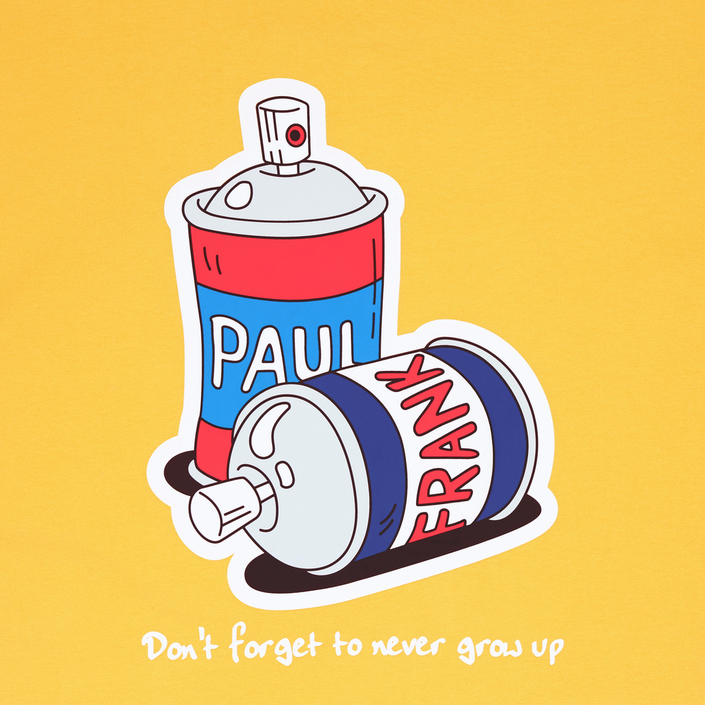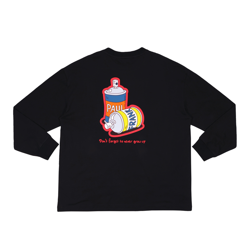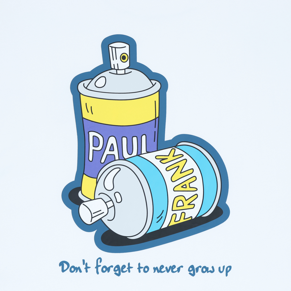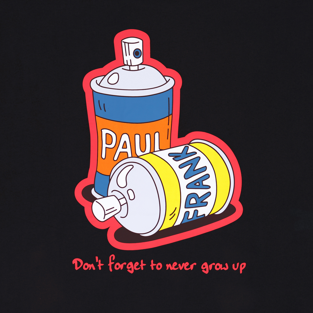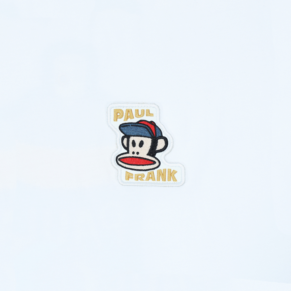 正面繡有戴帽造型的 Julius 布標,背面噴漆罐印花使用特殊工藝印花,展現出圖案層次立體感。