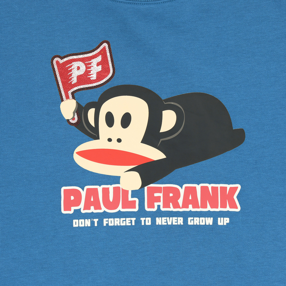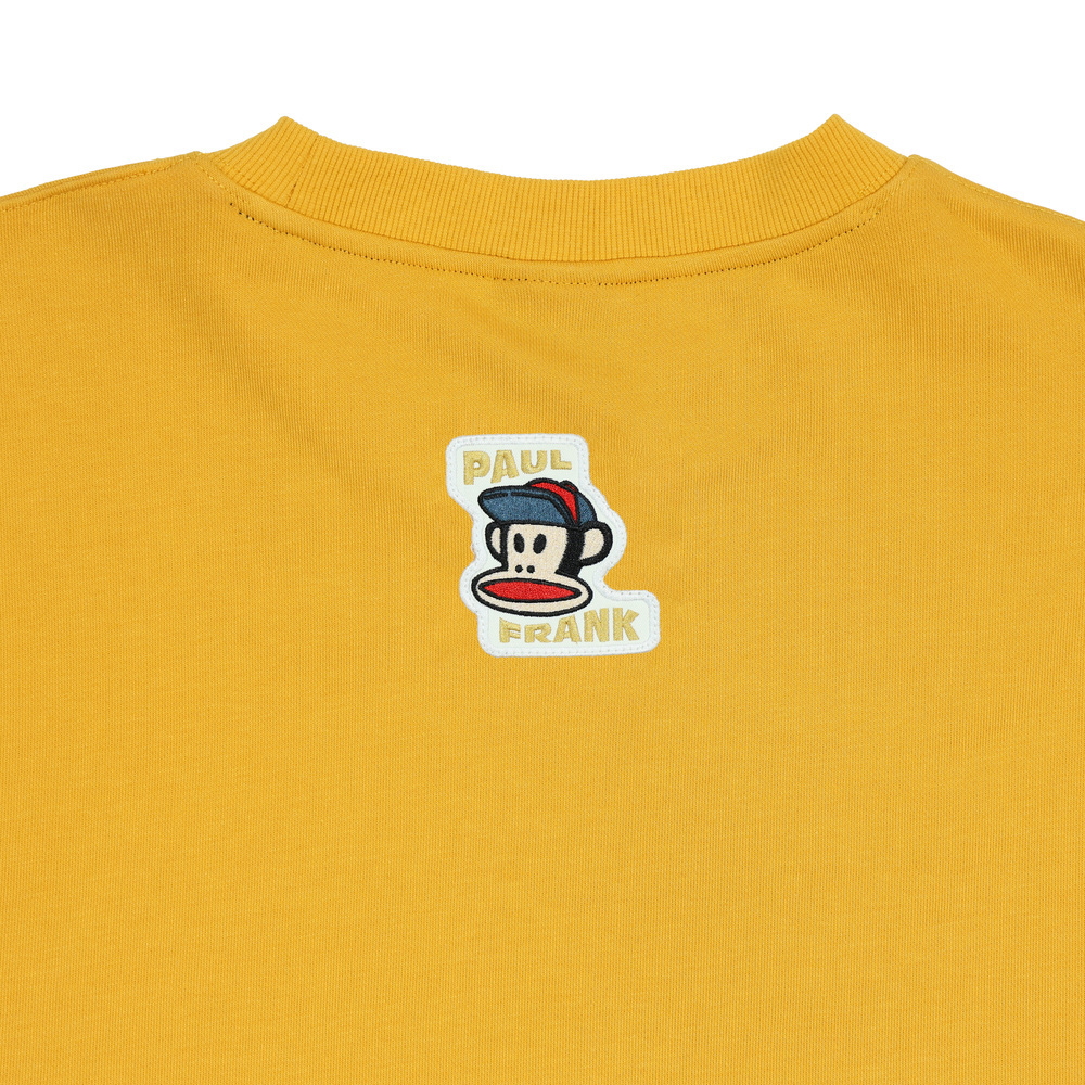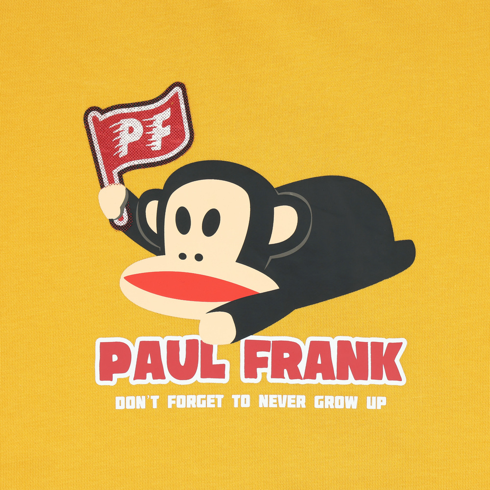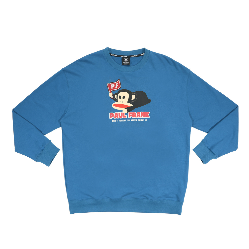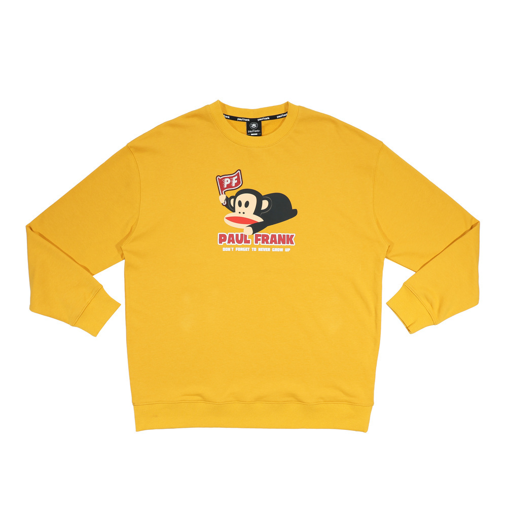 正面為趴臥姿勢的 Julius 印花,手中揮舞著採用特殊工藝製作的 PF 旗幟,呈現出一種慵懶卻又想努力的趣味氛圍。