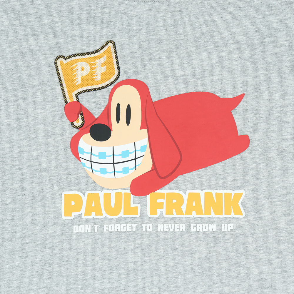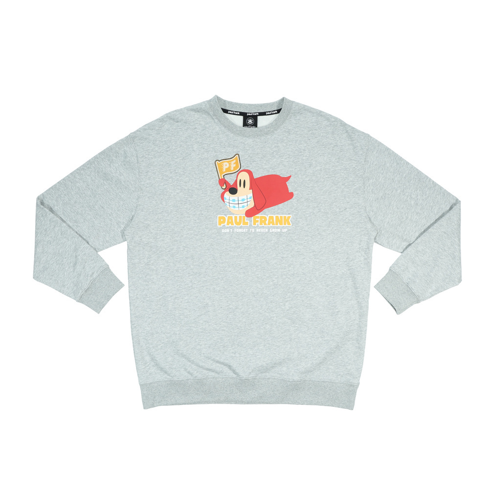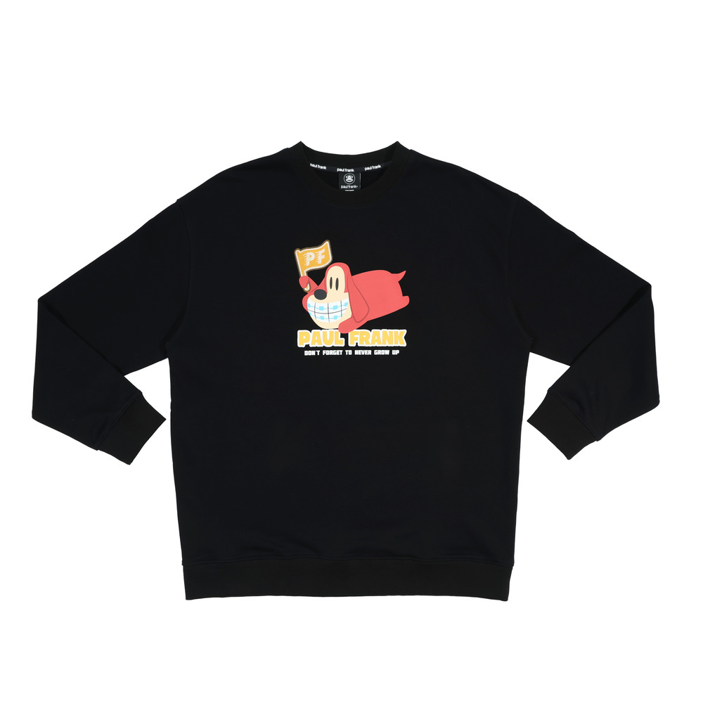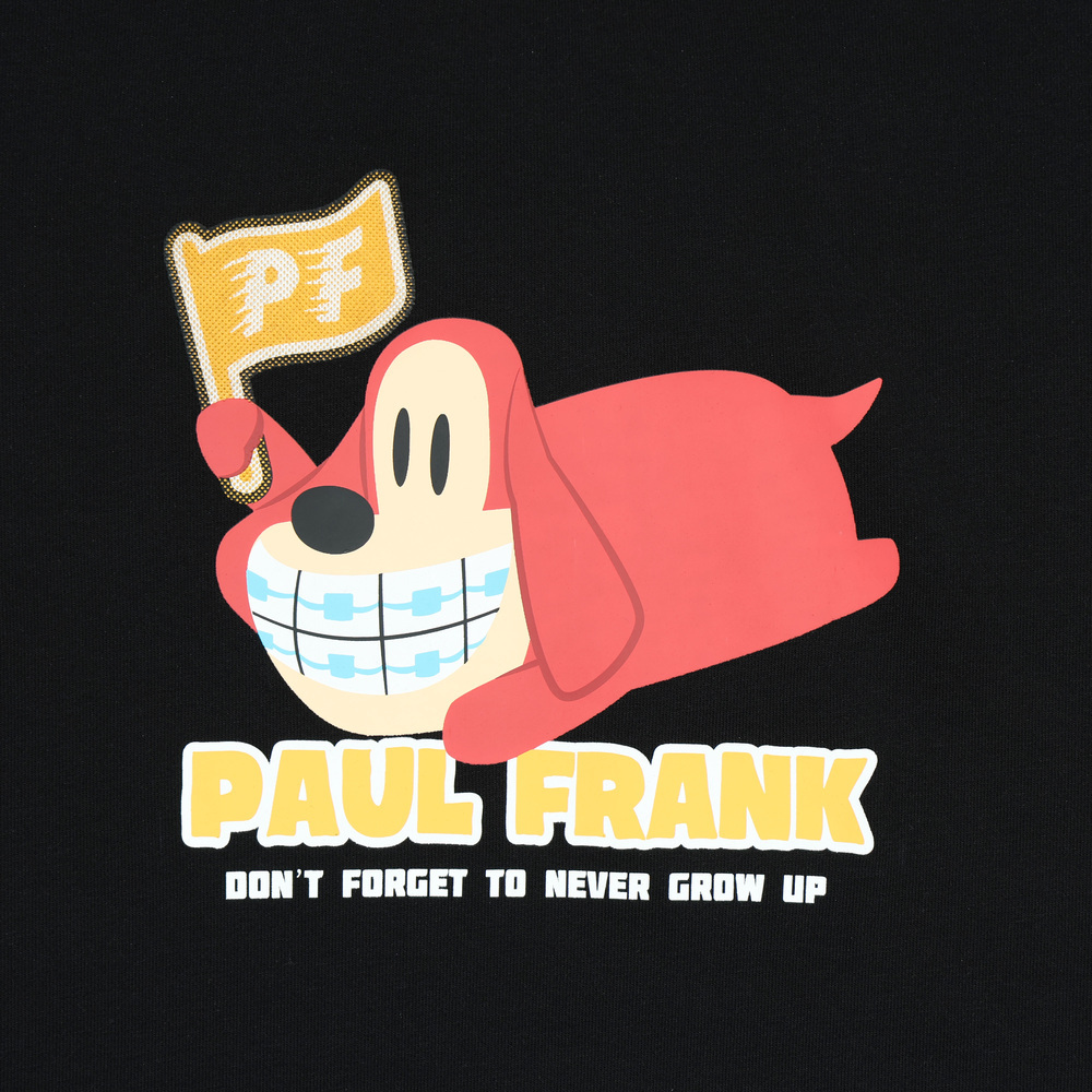 正面為趴臥姿勢的 Bob 印花,手中揮舞著採用特殊工藝製作的 PF 旗幟,呈現出一種慵懶卻又想努力的趣味氛圍。