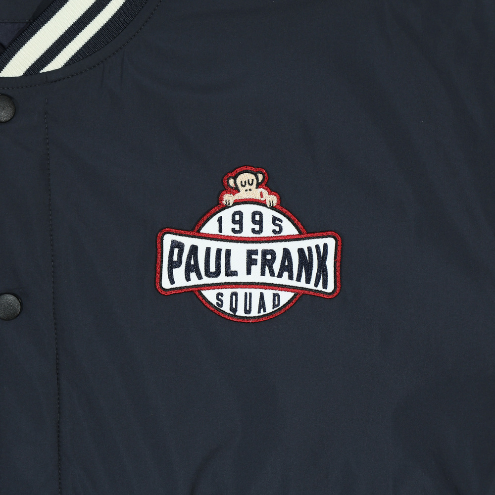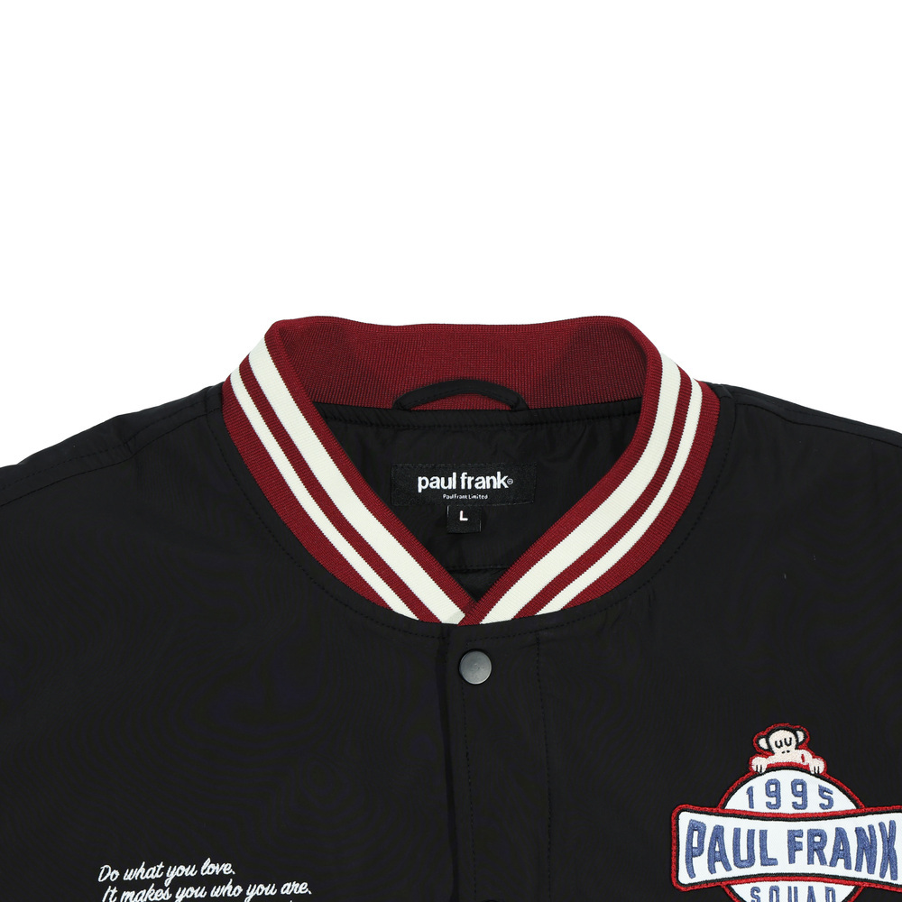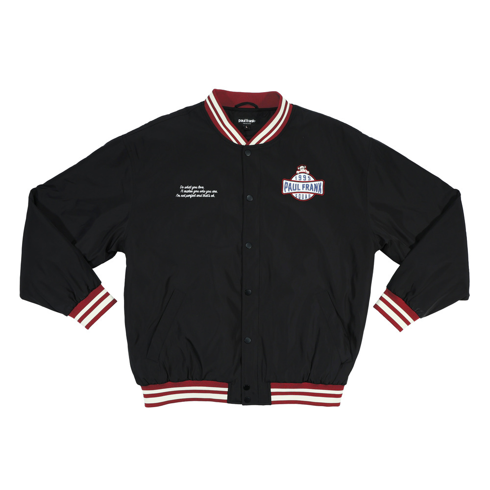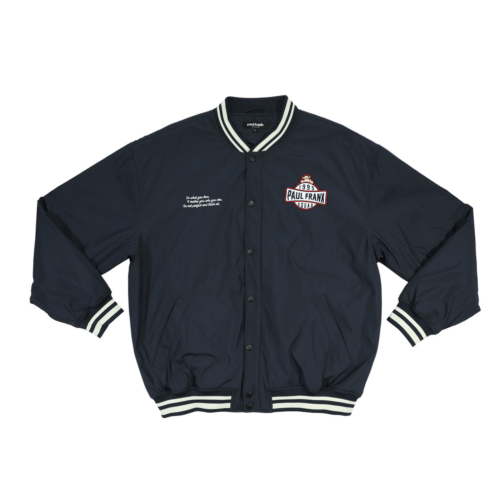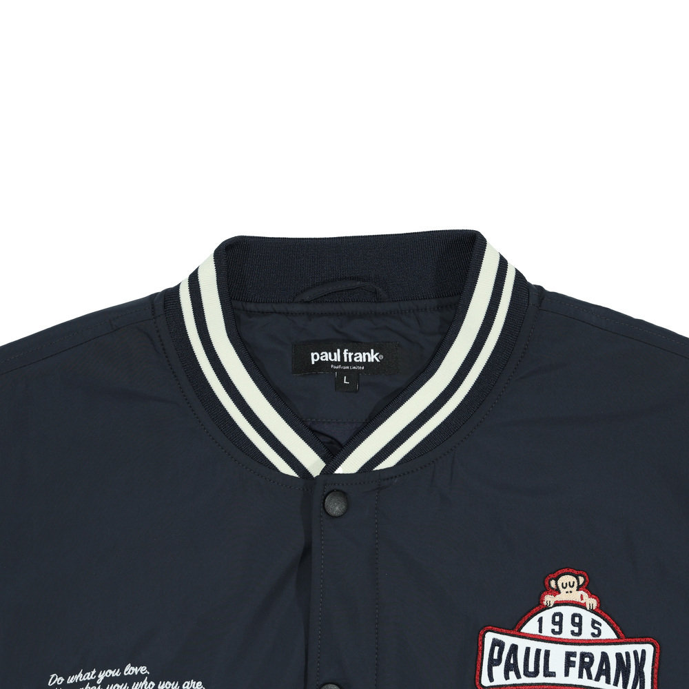 左胸繡有趣味的貼布章及右胸繡有品牌經典標語,背後精緻貼布繡花,展現濃厚品牌個性,經典不敗的棒球外套,輕鬆搭配上衣,就能穿出時髦又實穿的街頭感穿搭,保暖又潮流!
