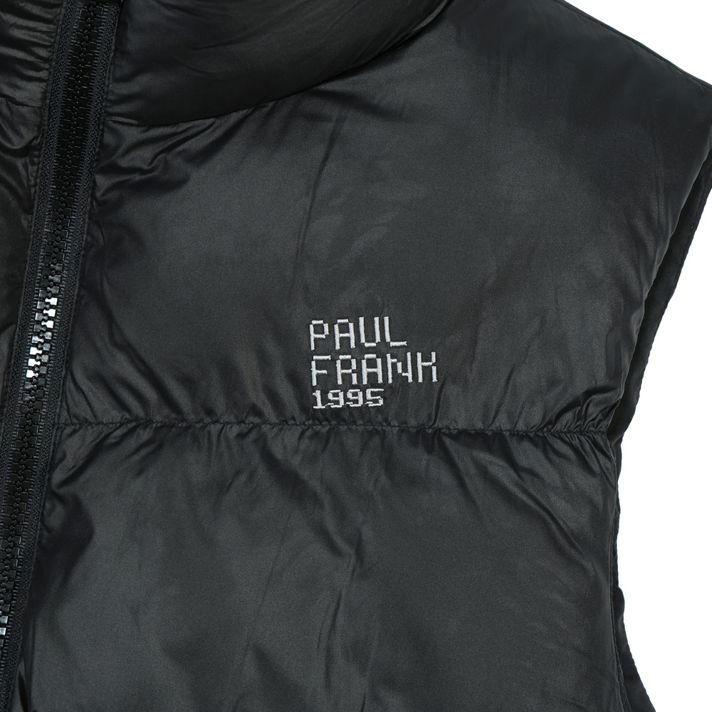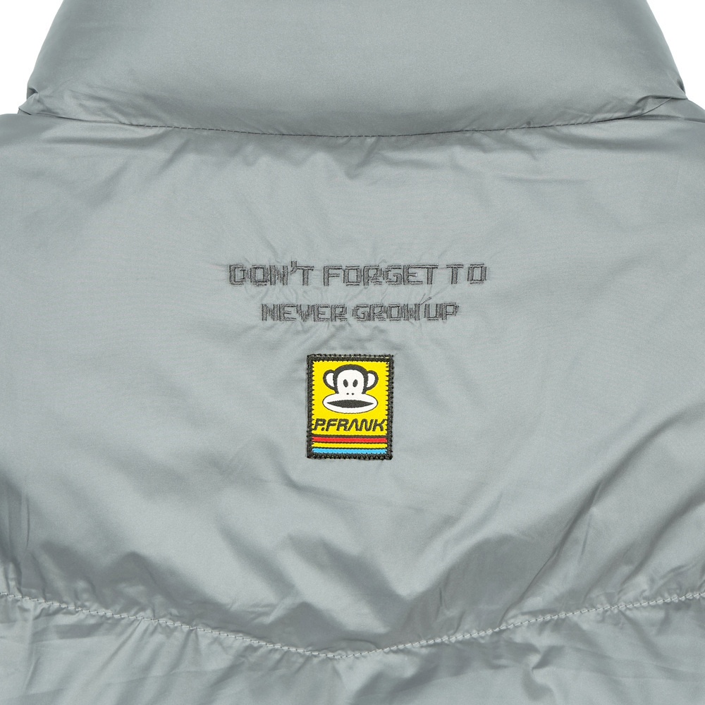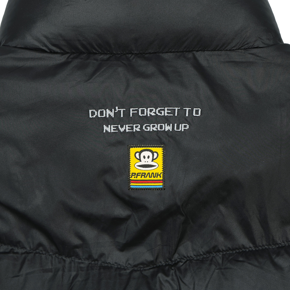 胸前為PUAL FRANK像素字體繡花,背後繡有品牌經典標語及賽車小標,展現低調但富趣味的細節感。輕鬆搭配上衣,就能穿出時髦又實穿的街頭感層次穿搭。