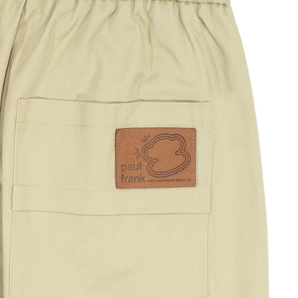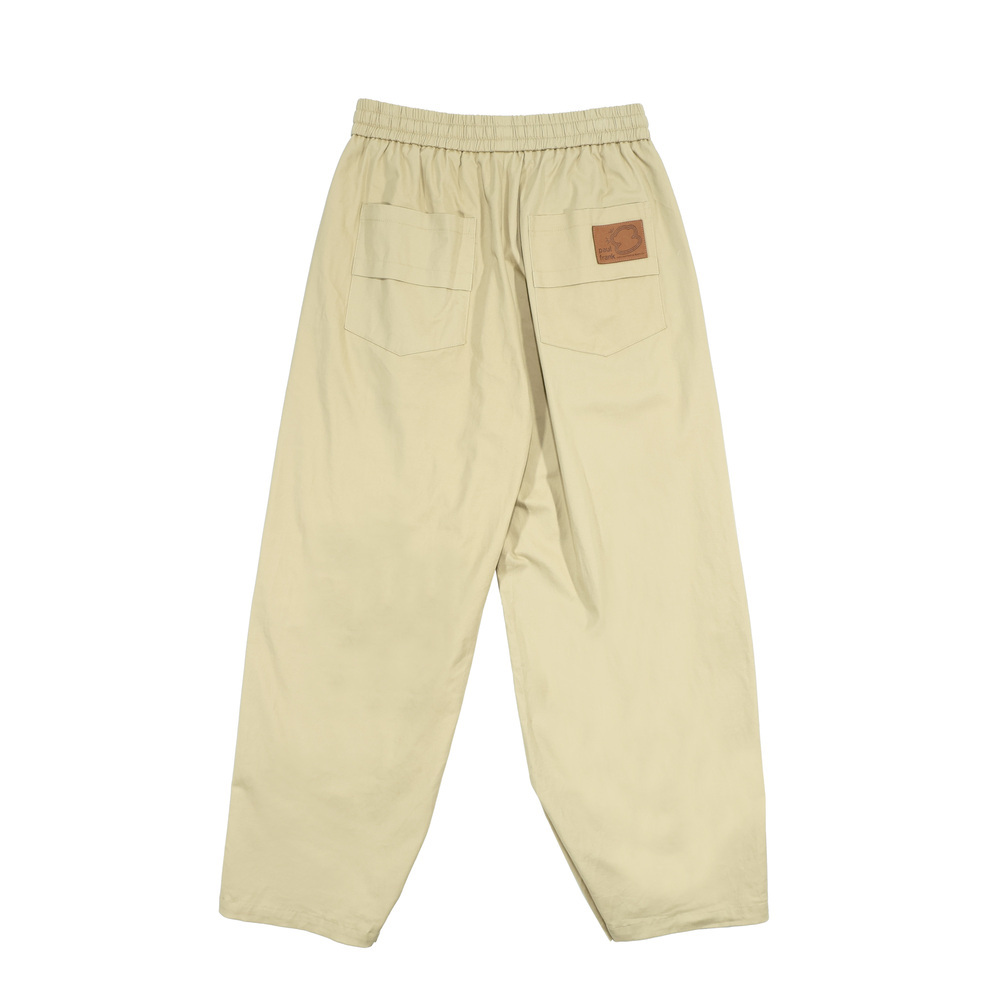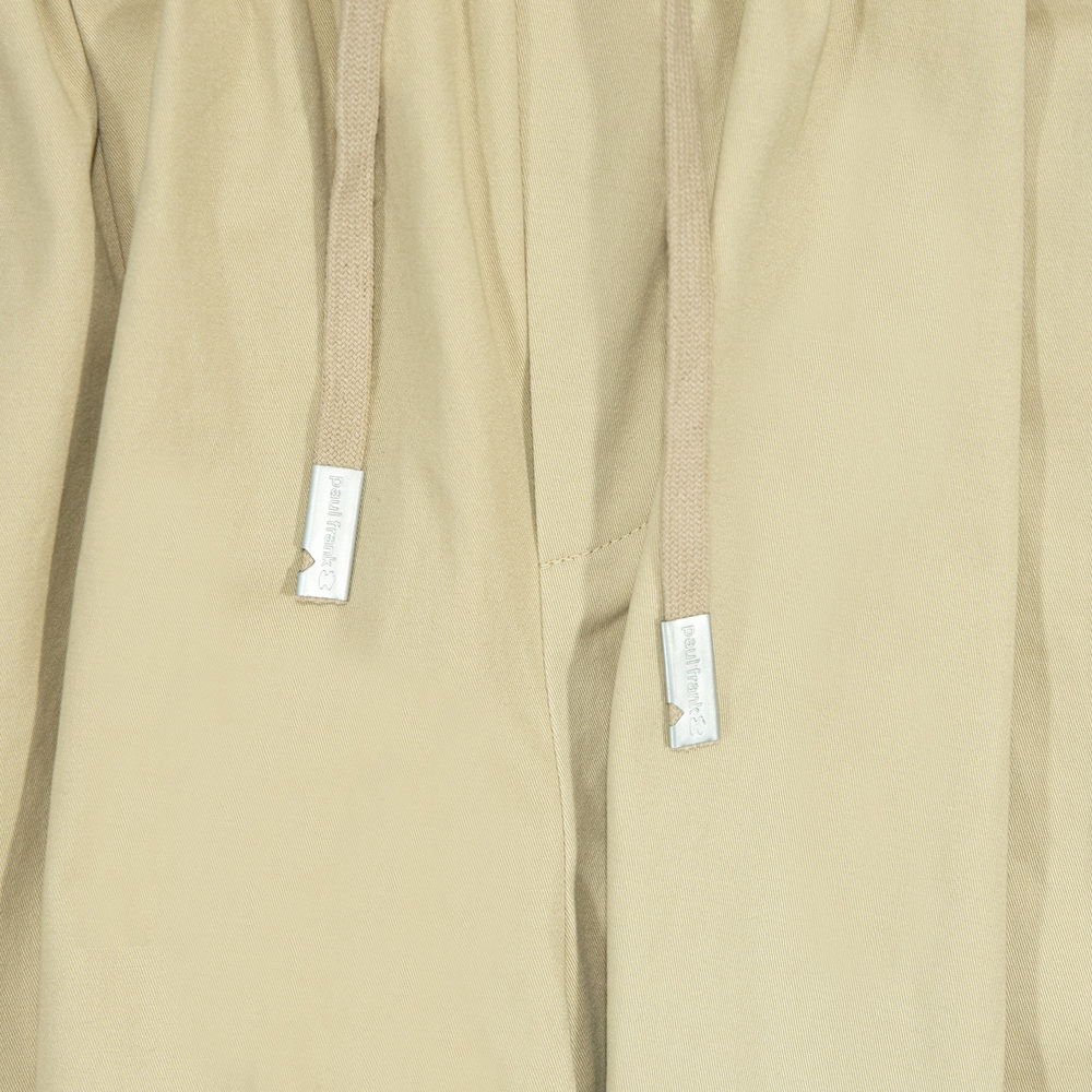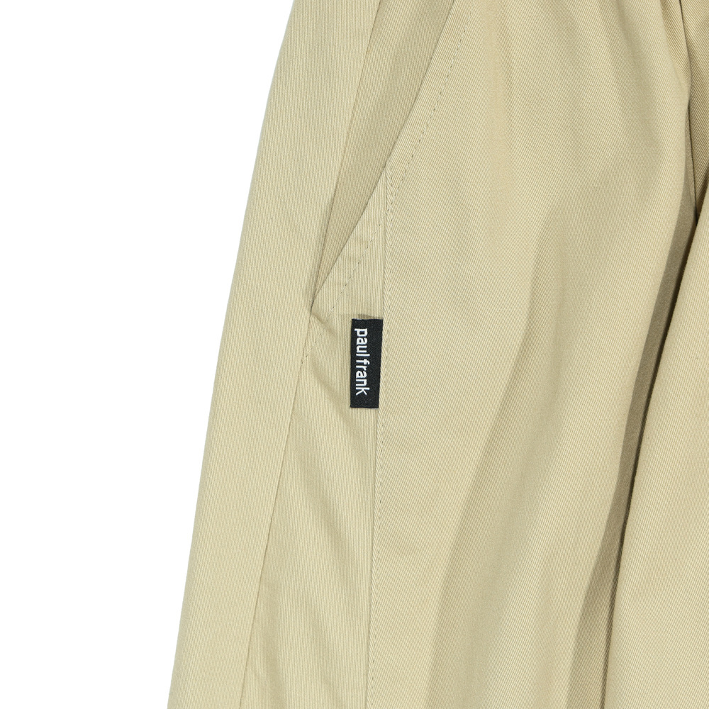 腰繩收尾使用品牌繩尾吊鐘,後口袋加上品牌皮標,整體設計率性中帶點俐落。