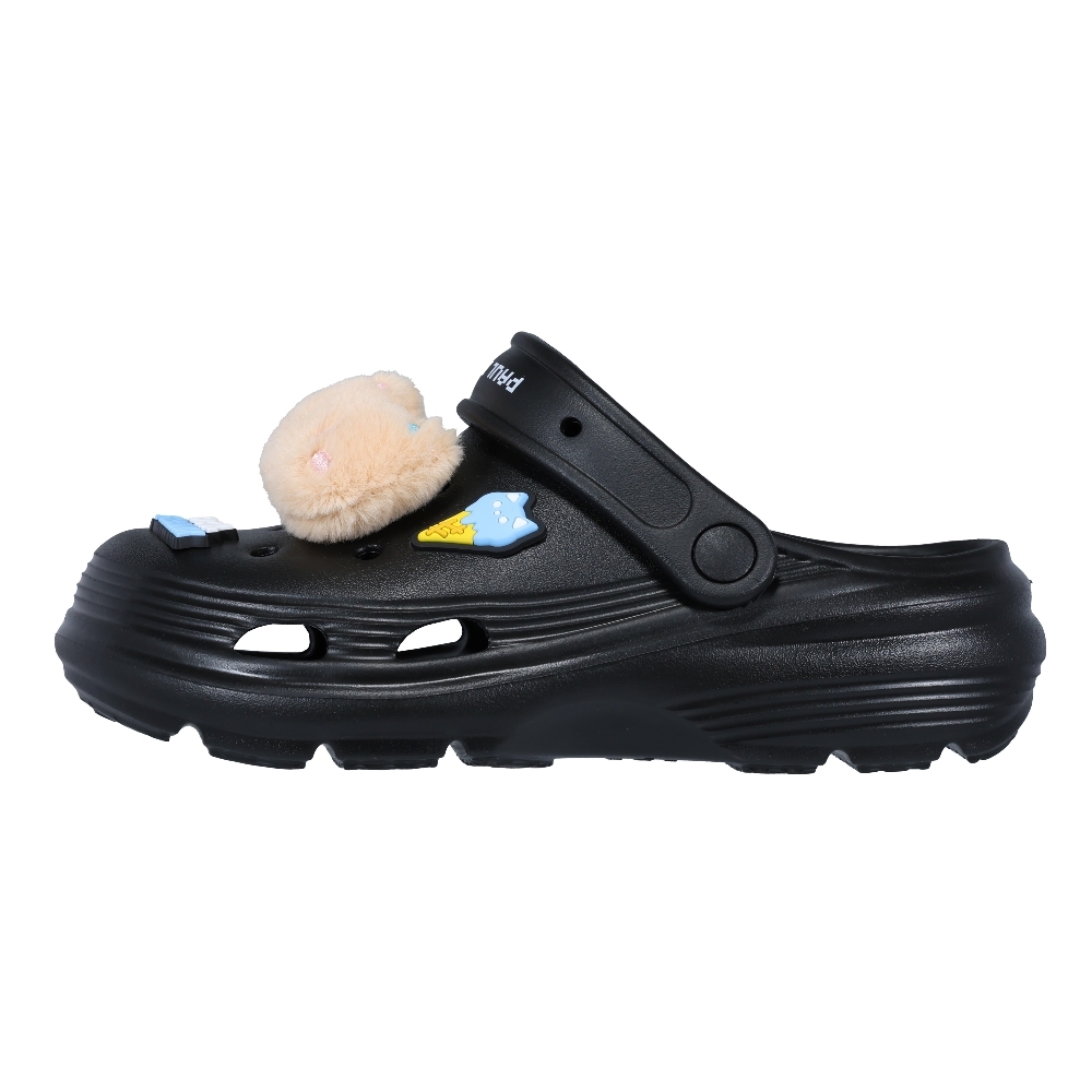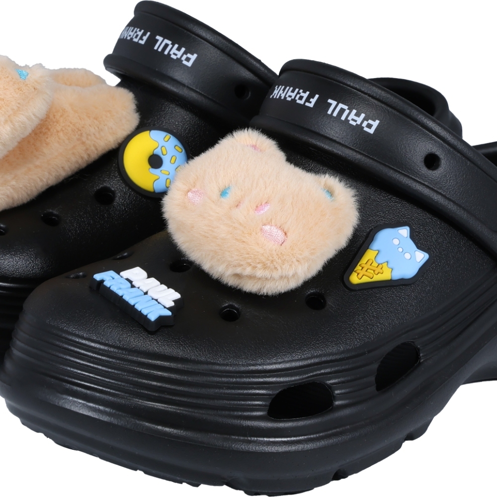 鞋面附有可愛大嘴猴毛茸茸娃娃裝飾,俏皮吸睛又療癒。