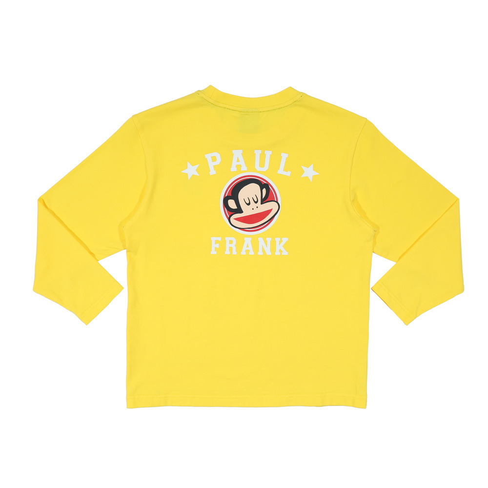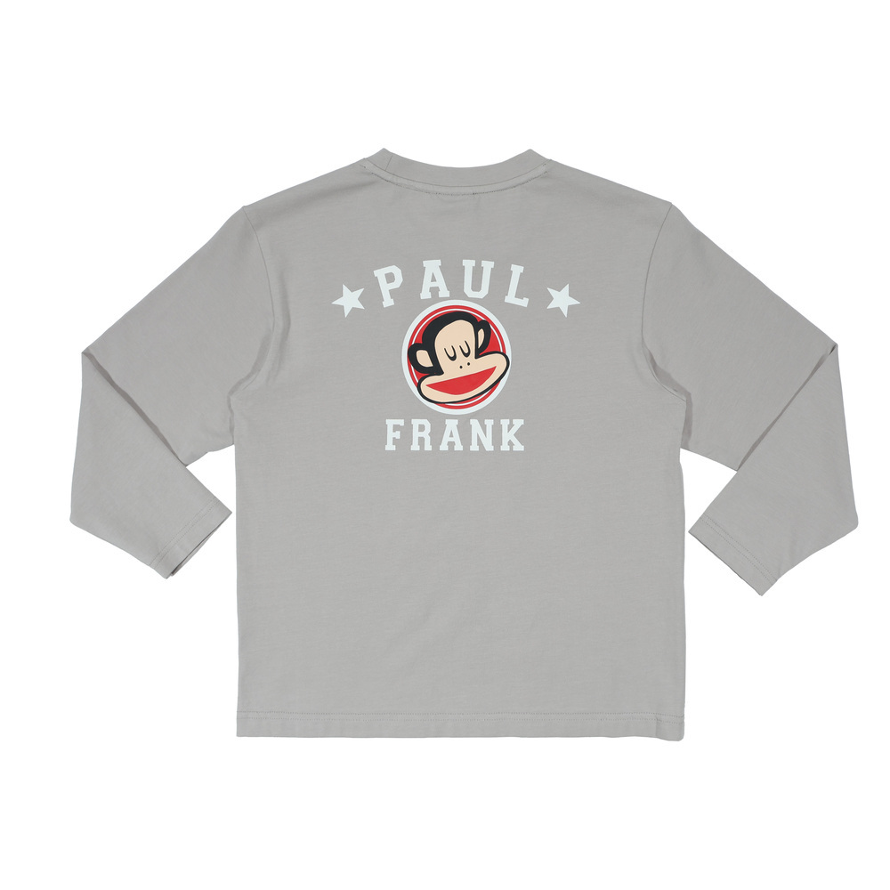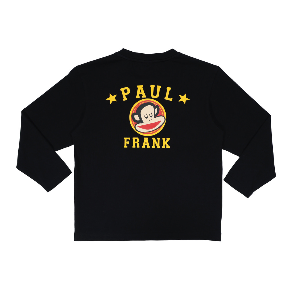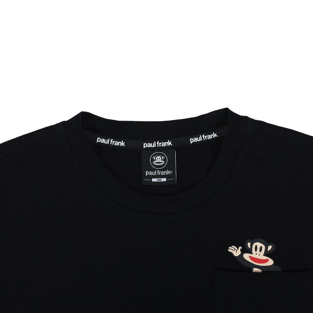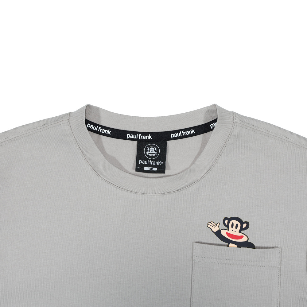 此款薄長袖T恤,使用帶點彈性的薄面料,穿著舒適,左胸前口袋中露出的 Julius 招手印花與背面大圖 Julius 印花,展現出趣味朝氣風格。