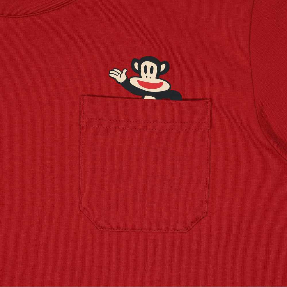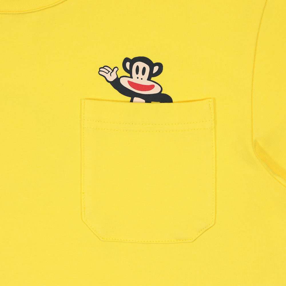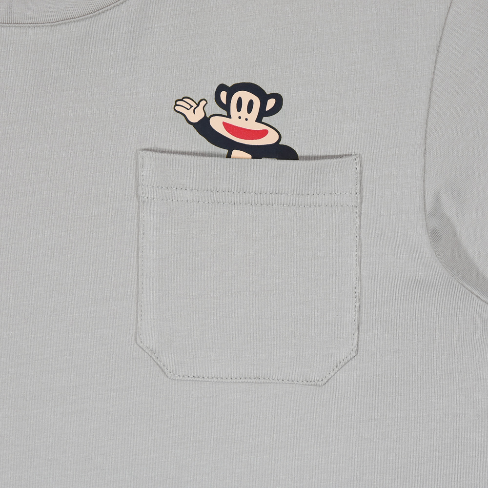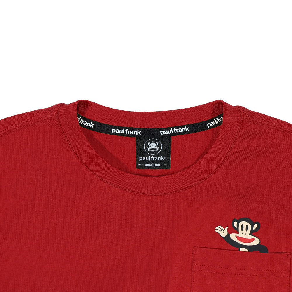 此款薄長袖T恤,使用帶點彈性的薄面料,穿著舒適,左胸前口袋中露出的 Julius 招手印花與背面大圖 Julius 印花,展現出趣味朝氣風格。