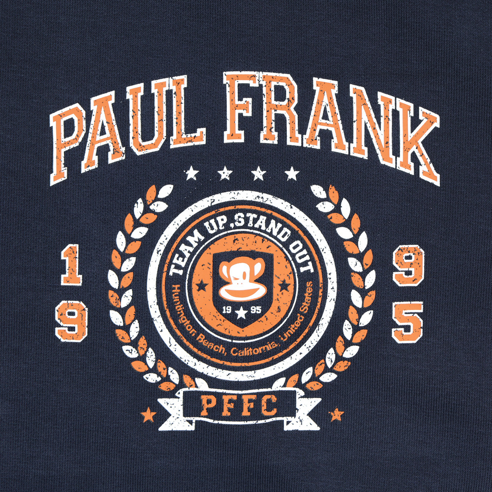 此款為經典校園上衣,使用貼合面料,手感親膚舒適,整體設計復古配色,正面印有 Julius 校隊圖案 ,「TEAM UP, STAND OUT!」邀請大家一同步入PAUL FRANK 的童趣校園~
