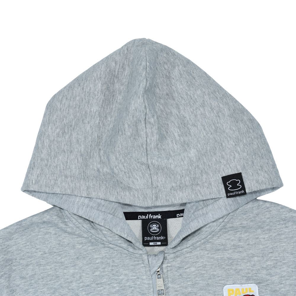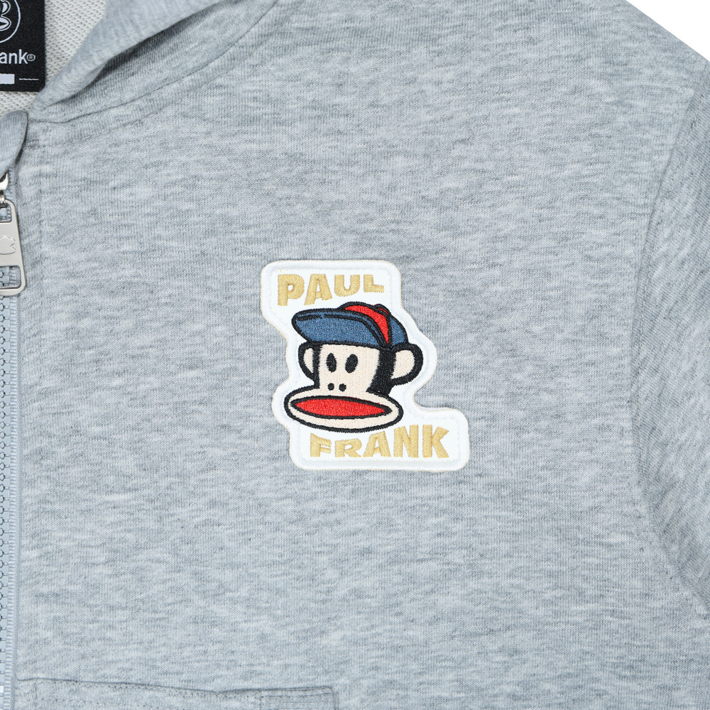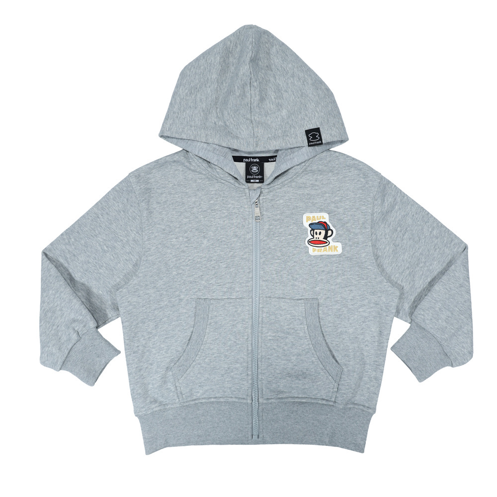 胸前繡有戴帽造型的 Julius 布標,整體風格可愛俏皮,口袋口使用羅紋收邊,整體風格可愛俏皮,充滿童趣與個性。