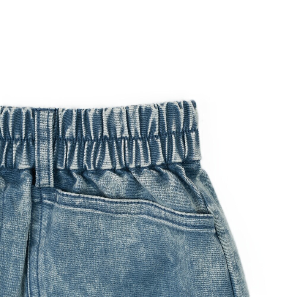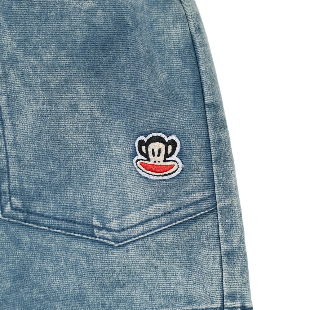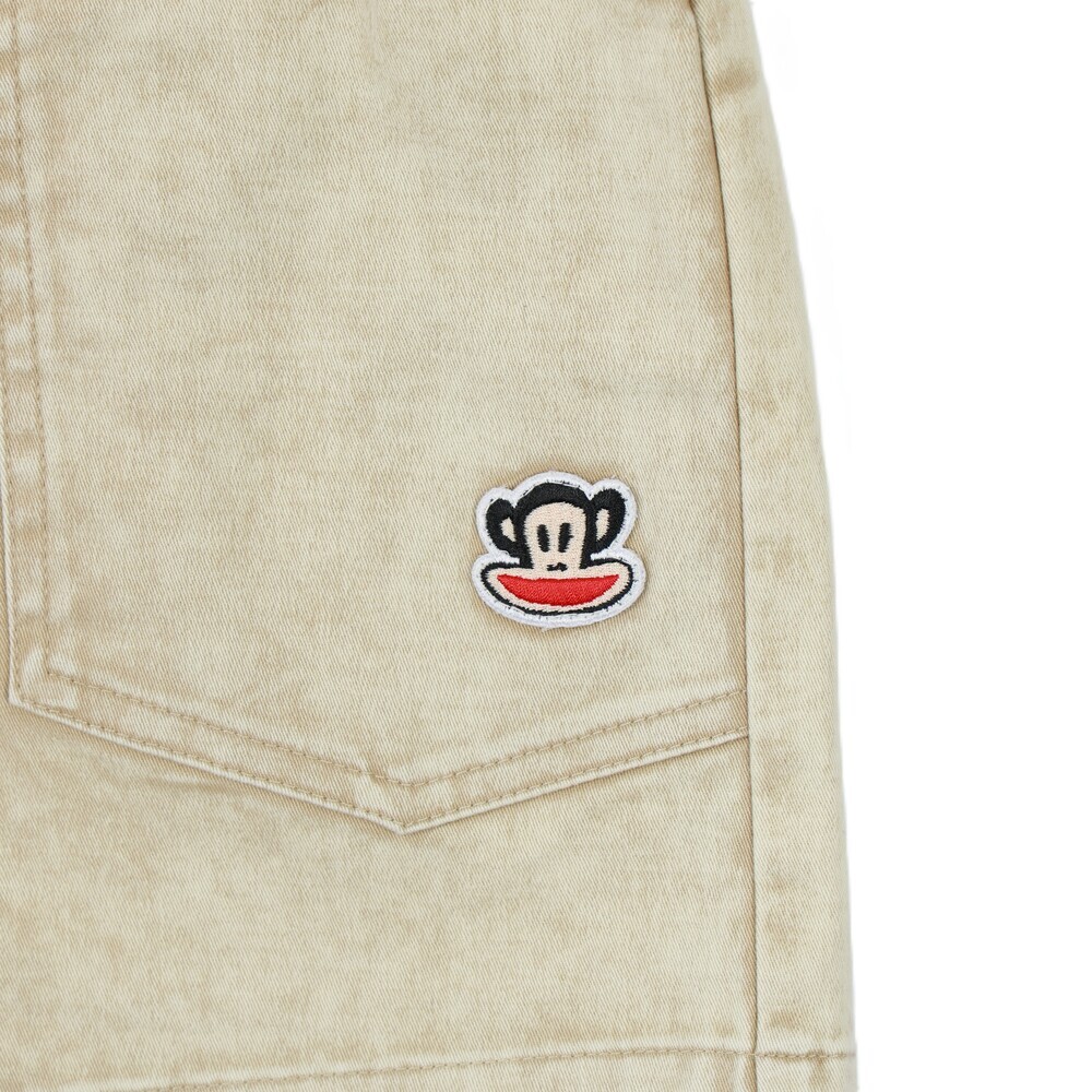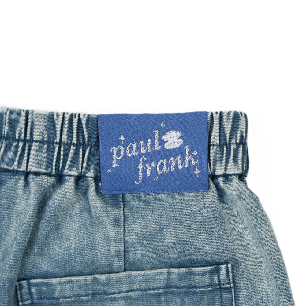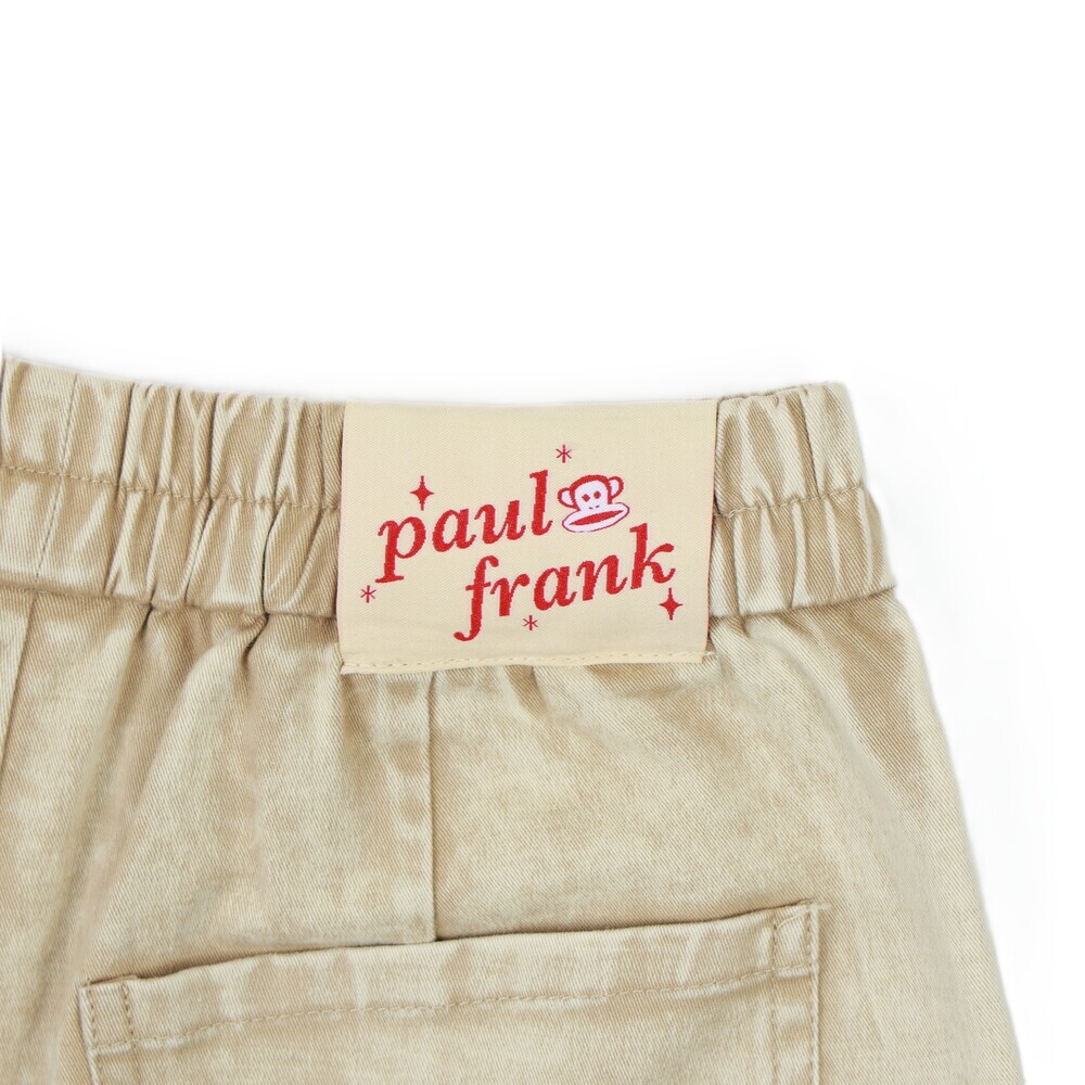 短褲搭配 Julius 塗鴉小標,後側腰頭加入糖果包裝造型織標,細節低調可愛,兼顧舒適度與趣味設計,適合日常與外出穿搭。