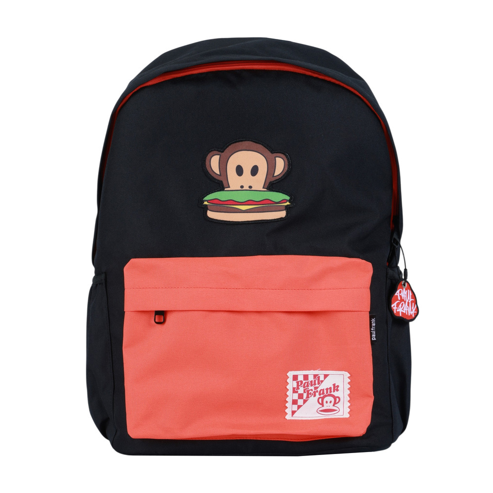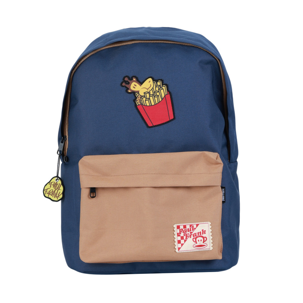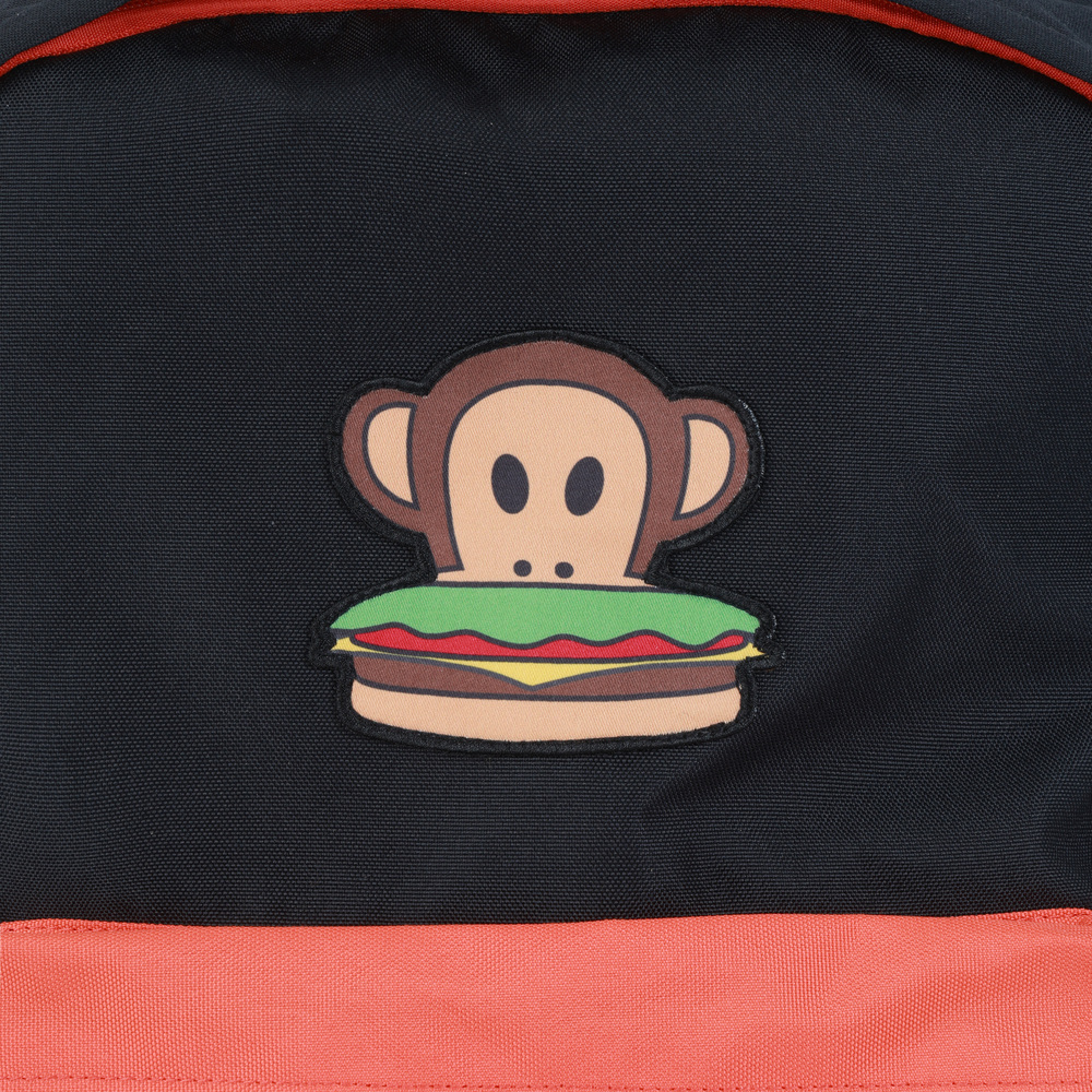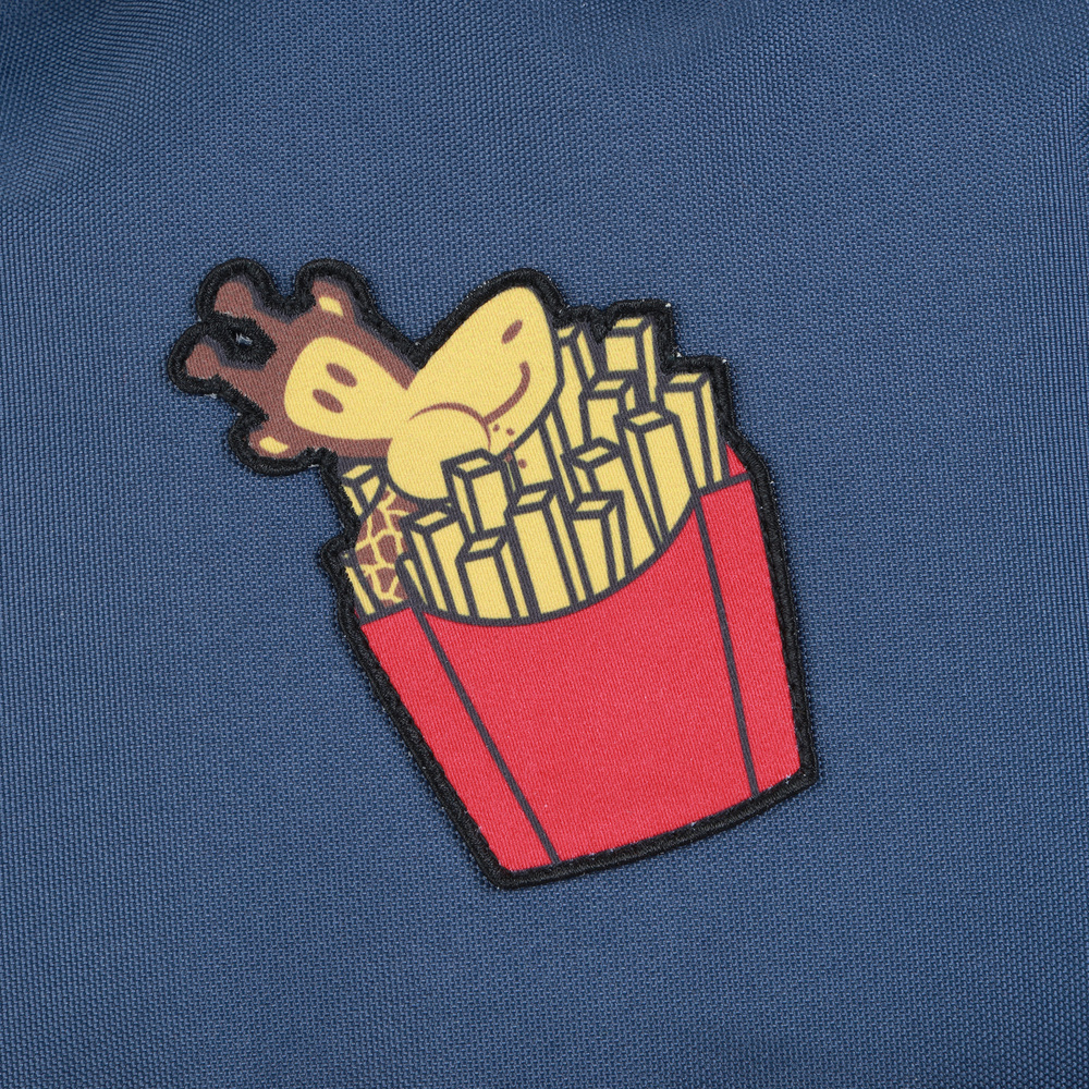 本款為 食物系列後背包,視覺核心聚焦於包包中心,以具識別度的趣味食物章仔 作為主視覺,透過童趣元素傳遞親切且具有記憶點的風格。