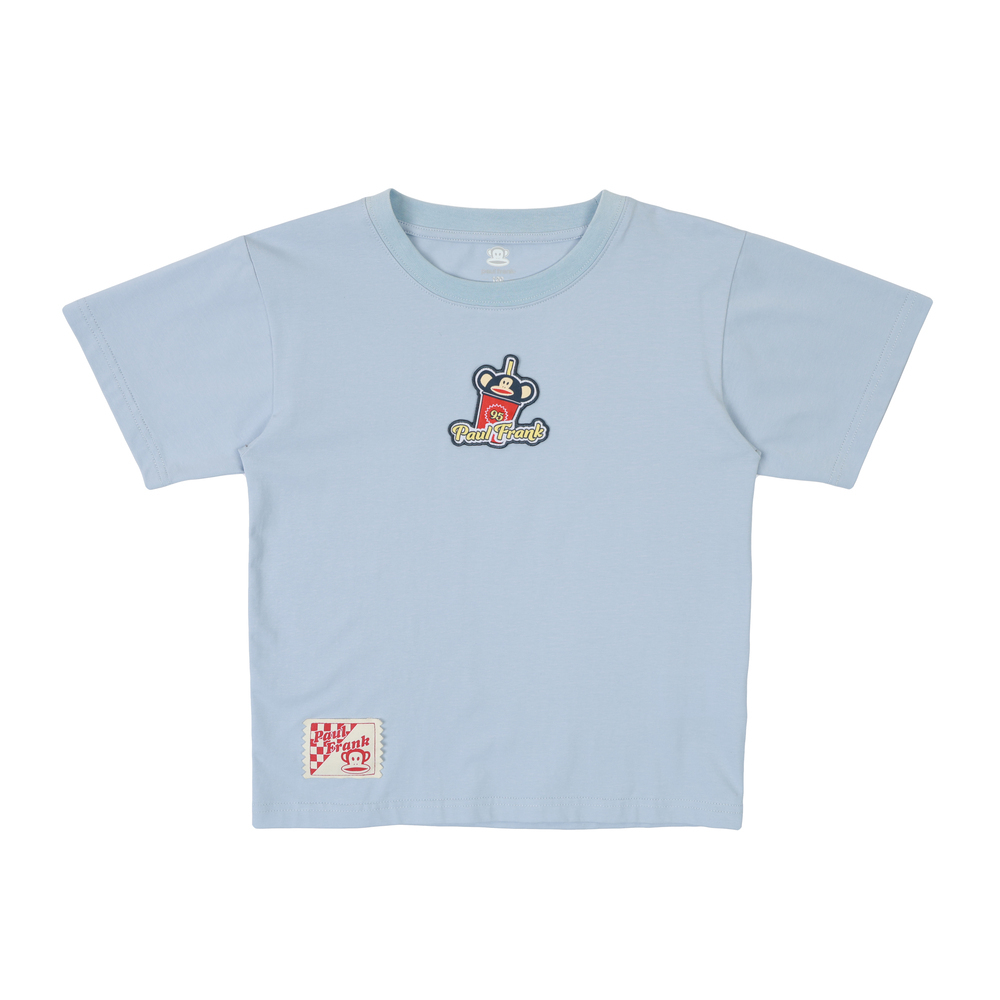 胸前Julius汽水織標貼布繡呈現工藝細節,背後大圖印花及下擺織標細節點綴,注入濃厚美式復古氛圍。把夏天的快樂穿上,一起走進夏日零食樂園!